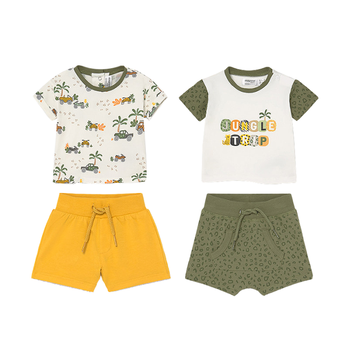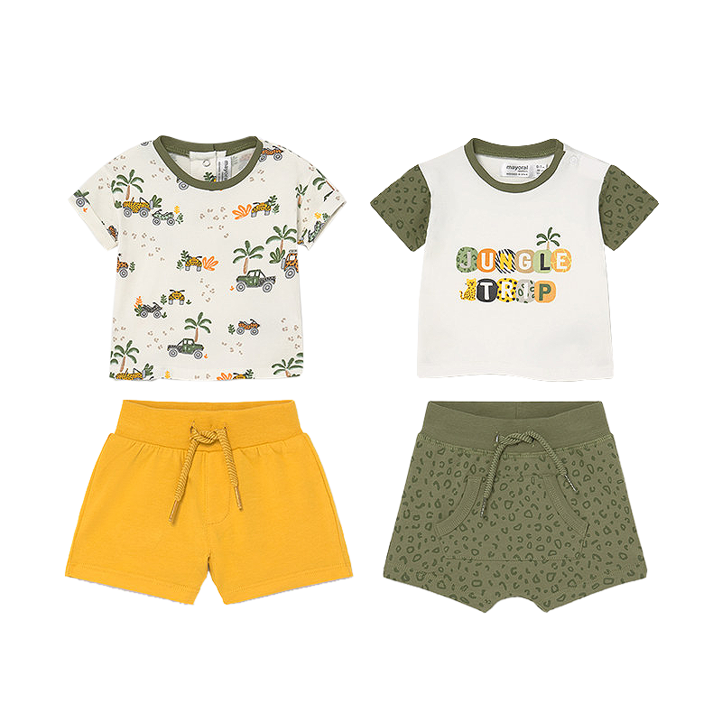 Set 4 piese - Tricou si pantaloni scurti Compleul pentru baieti este format din: - 2 tricou - 2 pantaloni scurtiTricou