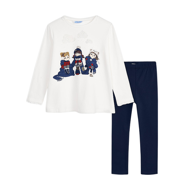Set leggings, fetitaBluza cu maneca lungaBluza cu maneca lunga are gulerul la baza gatului.Material moale din bumbac elastic. Elemente decorative: desen pe partea frontala, strasuri.