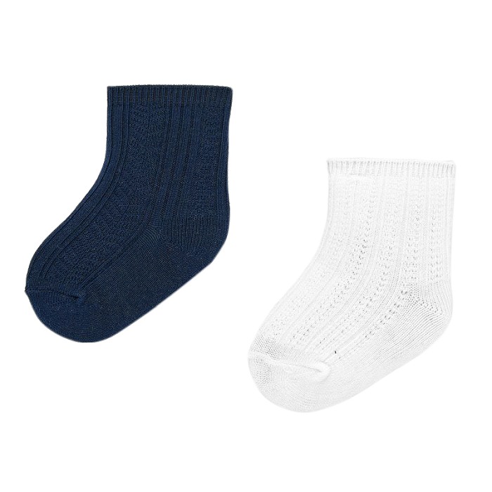 Set sosete - alb / albastru Set practic format din 2 perechi de sosete pentru baiat nou-nascut.Este un accesoriu usor de combinat si versatil, fiind ideal pentru completarea oricarui look.Materialul este moale din bumbac elastic, avand un design cu model neted.Material: 72% bumbac / 25% poliamida / 3% elastan