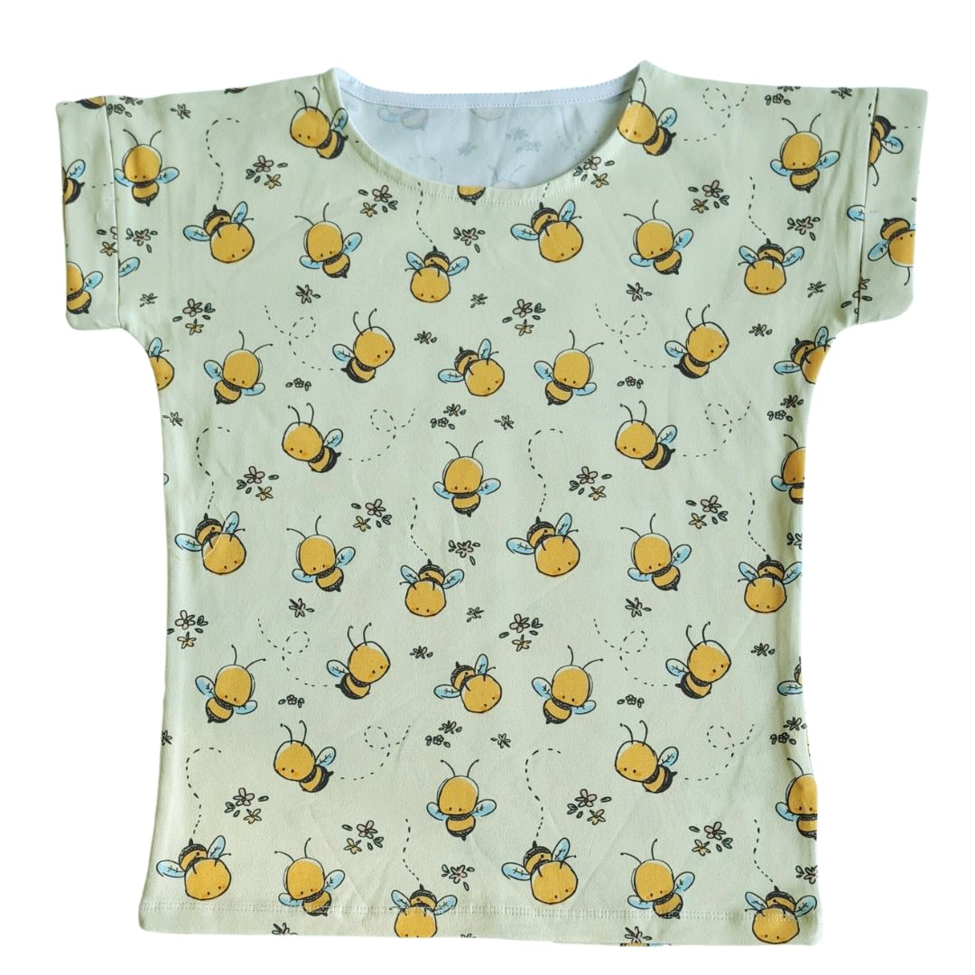 Tricou cu maneca scurta - AlbinuteTricoul este rotund la gat si are maneca scurta dublata.Materialul este de buna calitate, rezistent la spalat, iar culorile se pastreaza in timp.Material: 100% bumbacCuloare: galben paiImprimeu: albinuteIntretinere: