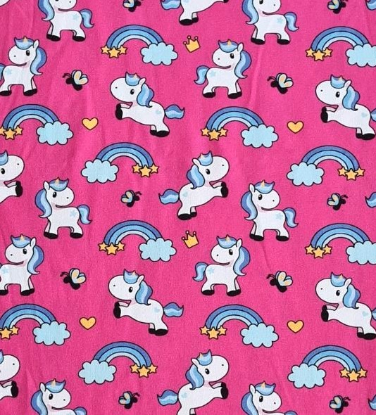 Tricou cu maneca scurta - UnicorniTricoul este rotund la gat si are maneca scurta dublata.Materialul este de buna calitate, rezistent la spalat, iar culorile se pastreaza in timp.Material: 100% bumbacCuloare: magentaImprimeu: unicorniIntretinere: