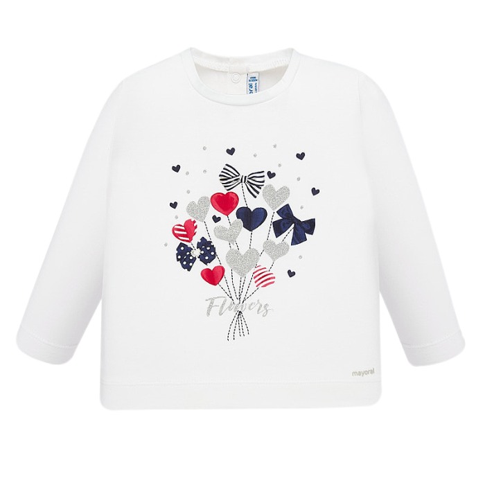 Tricou maneca lunga - Inimioare Tricoul cu maneca lunga are guler rotund, iar inchiderea se face cu capse pe partea posterioara, pentru a usura imbracarea bebelusului.