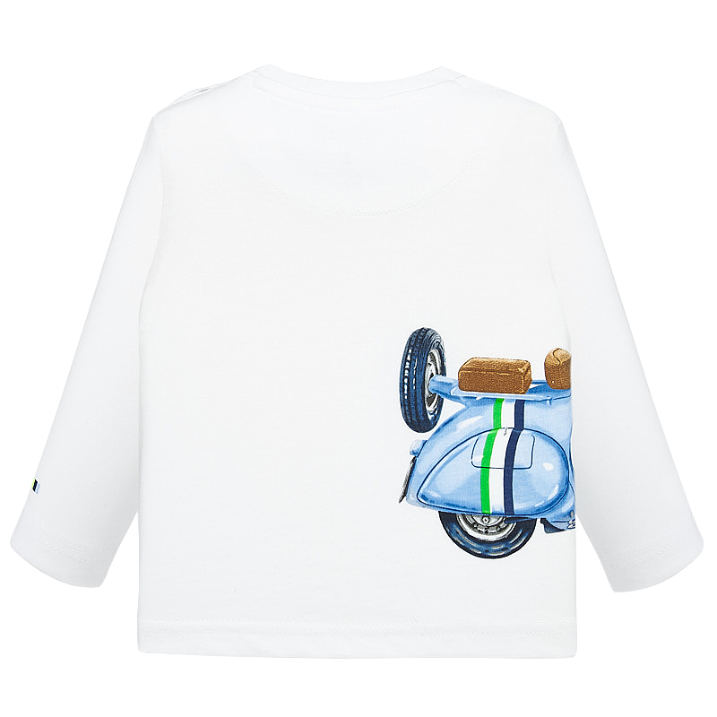 Tricou maneca lunga - Motocicleta - AlbTricoul cu maneca lunga, are guler rotund, la baza gatului.Material moale din bumbac elastic. Elemente decorative: desen motocicleta
