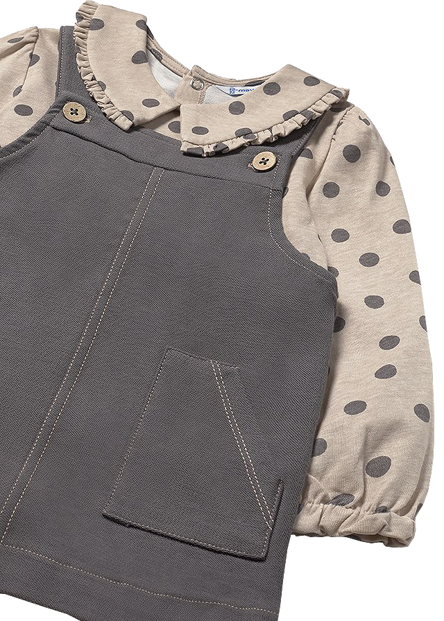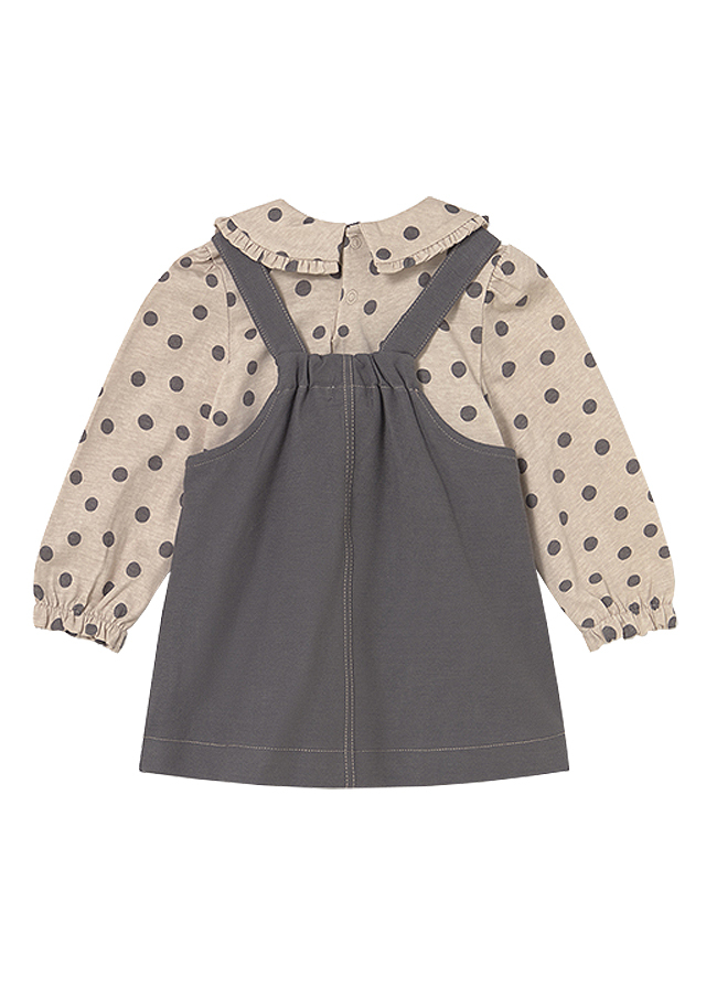 Bluza cu maneca lunga si mansete elastice are guler rotund cu volane, iar inchiderea se face cu capse pe partea posterioara, pentru a facilita imbracarea copilului. Material moale din bumbac elastic. Design: imprimeu.