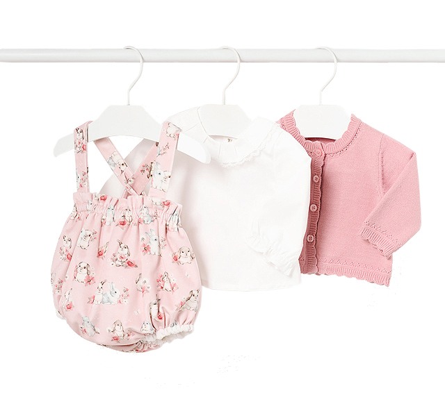 Setul pentru fetite este format din: - jacheta tricot (cardigan) - bluza cu maneca lunga - salopeta