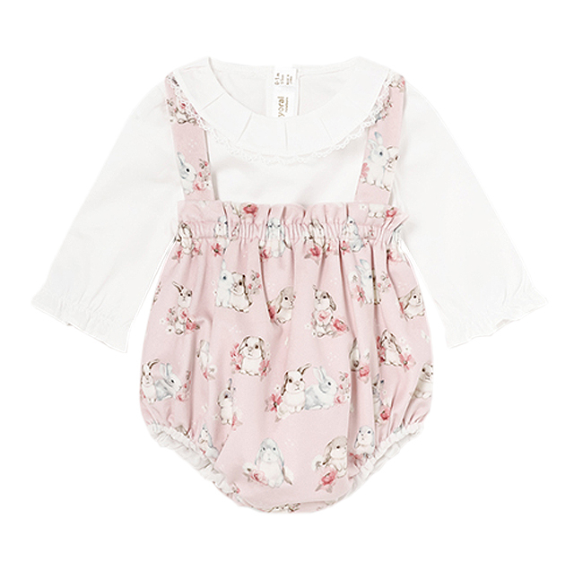 Bluza cu maneca lunga are guler rotund si mansete elastice. Inchiderea se face cu nasturi pe partea posterioara, pentru a facilita imbracarea bebelusului. Tesatura popelin durabila si usor de ingrijit.Elemente decorative: guler din volan cu dantela pe margine