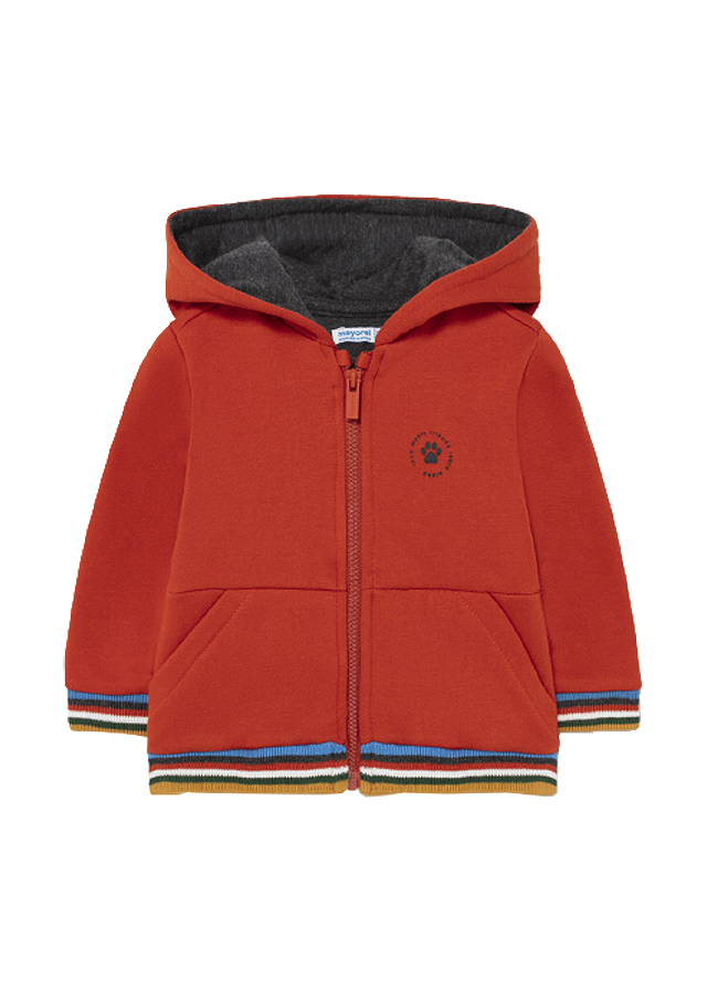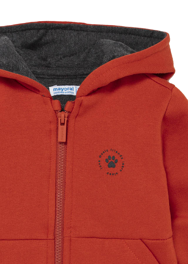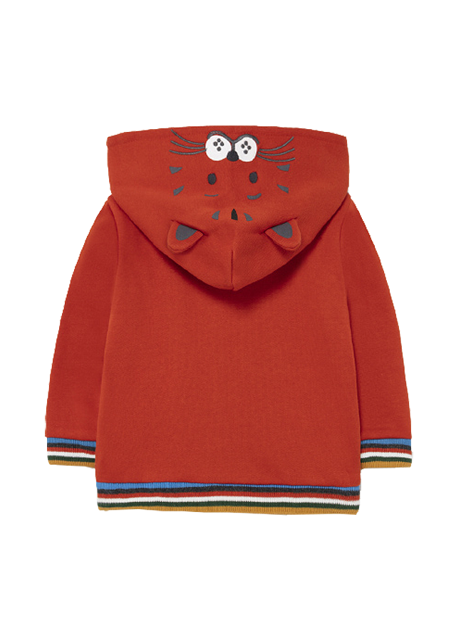 Materialul este calduros din plus gros, special pentru a proteja impotriva frigului. Buzunarele sunt functionale pe partea frontala. Elemente decorative: aplicatii urechiuse, broderie, desene.Material: 98% bumbac / 2% poliester Culoare: portocaliuIntretinere: