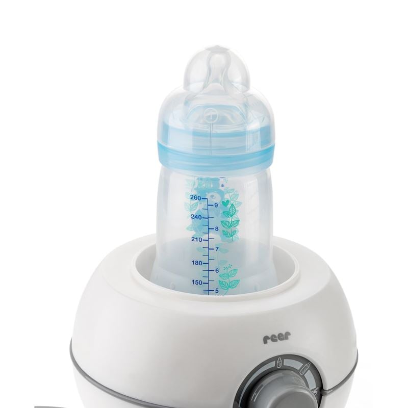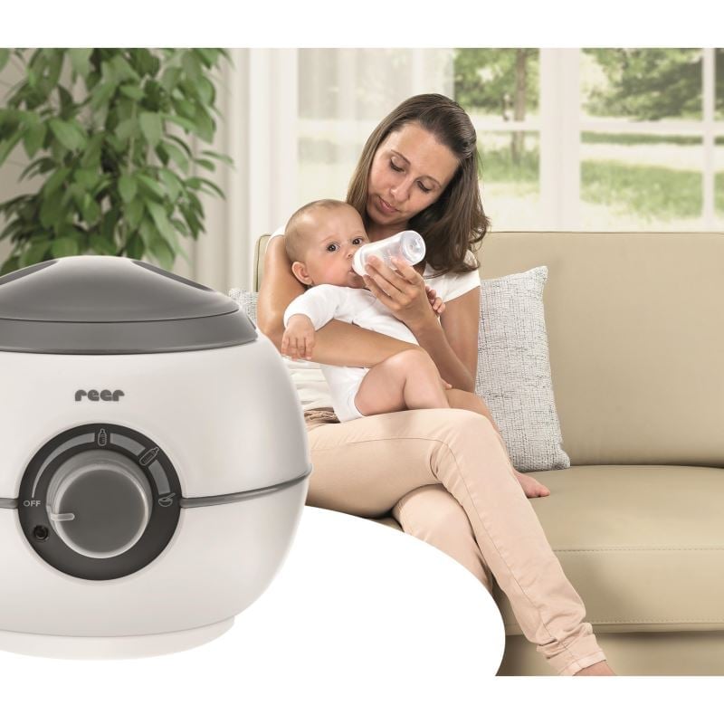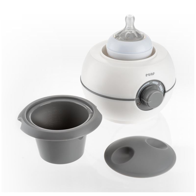 Cu ajutorul incalzitorului FoodBall de la Reer puteti acum nu doar incalzi rapid si usor mancarea, dar si sa va asigurati ca este incalzita delicat si uniform.Încalzitorul FoodBall pentru mancarea copiilor este deosebit de usor de utilizat din cauza scalei care recomanda alegerea optima a temperaturii pentru prepararea alimentelor. Datorită reglajului continuu al termostatului, setarile sunt ușor reglabile, iar alimentele pentru bebeluși pot fi pregătite foarte usor. In plus, alimentele pentru copii pot fi metținute calde pentru o anumita perioada de timp.FoodBall poate încalzi toate biberoanele și borcanele obișnuite sau cele cu gat larg, cu un diametru de pana la 70 mm. In plus, castronelul livrat impreuna cu incalzitorul (care poate fi utilizat si ca o cana de masurare), poate fi folosit atat pentru incalzirea alimentelor pentru copii cat si pentru hranirea ulterioara a copilului. Iar capacul furnizat ofera o depozitare practica si sigura a incalzitorului.Capacul protector al plitei incalzitoare previne supraincalzirea sticlelor si borcanelor pentru bebelusi, deoarece nu permite contactul direct cu placa si garanteaza o distribuire uniforma a caldurii. Lampa de semnalizare led va indica cand incalzitorul este in procesul de incalzire.  Caracteristici: • Tehnologia moderna asigura o incalzire delicata si uniforma intr-o baie de apa, fara substante chimice sau microunde, in conditii de siguranta si eficienta energetica;• Termostat reglabil cu scara continua intuitiva;• Incalzirea mancarii pentru copii in 6-8 minute;• Potrivit pentru biberoane normale, sticle si borcane cu gat larg cu diametru pana la 70 mm;• Pregatirea atenta a alimentelor - se pastreaza vitaminele si substantele nutritive;• Se livreaza impreuna cu un castronel cu capac, foarte practic pentru incalzirea mancarii si hranirea bebelusilor;• Cu functie de mentinere calda a mancarii pe perioada dorita;• Oprire automata a incalzirii dupa atingerea temperaturii dorite;• Capac protector pentru plita incalzitoare;• Indicator luminos al starii de functionare;• Dimensiuni: diametru 15 cm, inaltime 10.5 cm;• Confectionat din material plastic fara BPA.