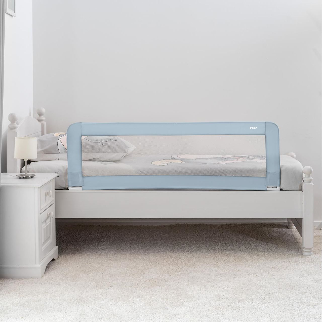 Protejeaza impotriva caderii din patCopiii mici, ca si adultii, se misca chiar si atunci cand dorm si adesea isi schimba pozitia in timpul fazelor de somn si visare. Noi, adultii, avem muschii activati inconstient, mediul este memorat si evitam caderea din pat. Dar acest mecanism instinctiv trebuie invatat mai intai, nu functioneaza perfect la copiii mici. Sina de pat Sleep'n Keep ofera protectie sigura impotriva caderii din pat.Bebelusii si copiii mici, in special, sunt expusi riscului de cadereCentrul de greutate al bebelusilor si copiilor mici este mult mai inalt decat cel al adultilor, motiv pentru care acestia pot suferi adesea leziuni la cap chiar si cand cad de la inaltime mica. Acest lucru poate duce la leziuni cerebrale traumatice severe, in special la nou-nascuti. O aparatoare pentru pat poate preveni caderile din pat. Bariera pentru pat faciliteaza, printre altele, trecerea de la patut la patul mai mare pentru copii si tineret.De ce aceasta bariera pentru pat este daeosebit de siguraCu o inaltime XL de 50 cm, bariera pentru pat Sleep'n Keep de la Reer ofera copilului tau un plus de siguranta atunci cand doarme. Datorită inaltimii XL este potrivita si pentru saltele inalte cu o grosime de pana la 30 cm. Datorita picioarelor extra largi si stabile, sina de pat anticadere ofera o prindere sigura pe cadrul cu lamele (somiera patului) fara alunecare. Husa din nailon este moale si nu fosneste, se simte deosebit de placut, oferind si protectie impotriva loviturilor dureroase de marginea patului.Deosebit de stabil, 3 motode de prindere siguraExista trei moduri diferite de a atasa bariera de pat pentru a nu aluneca, a nu se rasturna sau a nu cadea. Este posibila o prindere fixa cu suruburi a picioarelor sistemului. Daca preferi o instalare rapida, poti atasa sina de pat pe sipcile individuale ale somierei patului folosind banda velcro de siguranta inclusa, cu reglare variabila, sau o poti strange pe cadrul cu sipci cu centura de tensionare inclusa. Sina de pat se livreaza pre-asamblata. Astfel, asamblarea si demontarea se fac rapid si usor. Datorita picioarelor de sustinere stabile si al sistemului de curele reglabile individual, acesta poate fi atasat in siguranta de cadrul cu lamele al somierei patului si este gata de utilizare in doar cativa pasi simpli. Pur și simplu prinde-o intre lamele si saltea. Nu este necesara insurubarea suplimentara pe pat. Picioarele de sprijin extra late previn alunecarea pe cadrul cu lamele. Husa barierei este detasabila si lavabila, este realizata din PVC si plastic fara ftalati.Ideala pentru calatorii si usor de depozitatDe asemenea, copilul tau ar trebui sa poata dormi in siguranta in orice pat. Cand bebe este la bunici sau cand calatoresti, bariera pentru pat Sleep'n Keep de la Reer ofera siguranta si protectie in timpul somnului. Este compacta si poate fi demontata in tije mici individuale pentru a economisi spatiu. Datorita sistemului de conectare practic, il poti asambla si dezasambla sau il poti plia din nou rapid si usor in doar cativa pasi simpli. Geanta practica din nailon o face usor de transportat si poate fi depozitata oriunde. Compatibilitatea barierei cu patul (asigura-te ca ti se potriveste)Pentru o prindere sigura a sinei de pat, este important ca sina să fie fixata cu una dintre optiunile de fixare (curea, banda velcro, imbinare cu suruburi). Prin urmare, din pacate, nu poti utiliza aceasta bariera pentru paturile pe arcuri si paturile cu apa.Potrivita pentru saltele cu inaltime de 10-30 cm: saltelele mai inalte ar lasa in exterior prea putin din inaltimea barierei și copilul tau ar putea cadea peste balustrada. La unele saltele mai mici decat cadrul patului exista un spatiu intre sina de pat și saltea, in care copilul se poate prinde și, in cel mai rau caz, se poate sugruma. Prin urmare, te rugam sa te asiguri ca acest gol nu se formeaza langa bariera de pat!Potrivita pentru paturile cu lungime de la 200 pana la 250 cm: copilul tau ar trebui sa se poata ridica din pat si din acest motiv nu ar trebui sa ingradesti patul cu bariere de jur imprejur. Pentru a urca si a cobori in siguranta din pat (valabil pentru copiii mai mari, care pot face acest lucru) si pentru a nu ramane copilul prins, te rugam sa te asiguri ca alegi lungimea corecta a barierei de pat. Pentru o siguranta deplina a copiilor, rezumam si insistam sa:Acorzi atentie inaltimii minime a saltelei pentru a preveni alunecareaAcorzi atentie inaltimii maxime a saltelei pentru ca bebelusul sau copilul sa nu cadaTe rugam sa nu construiesti o fortareata din barierele pentru pat, astfel incat copilul sa se poata ridica singur din pat. O bariera de pat nu inlocuieste un patut!Detalii produsofera celor mici o mare protectie in timpul somnuluipentru copii cu varsta de la 18 luni la 5 anipotrivita pentru paturile cu lungime de la 200 pana la 250 cmbariera este foarte inalta: 50 cmpotrivita pentru saltele de la 10 la 30 cm grosimeasamblare usoara datorita sistemului de conectare a barelornu este nevoie de insurubare pe pat (nu deterioreaza patul)fara risc de alunecare, datorita celor trei optiuni de prindere (curea, velcro, prindere cu surub)mica și usor de demontat, ideala pentru acasa si in deplasarelivrata impreuna cu o geanta practica, pentru depozitare si transport usormaterial: cadru din metal; husa din poliester moale, care nu fosneste, lavabil, fara ftalatinu este potrivita pentru paturi supraetajate si paturi cu apa, saltele pneumaticeculoare: albastru-gridimensiuni: 150 cm x 50 cm x 44 cmcontinut: 1x bariera de pat, 1x geanta de transport, material de asigurare