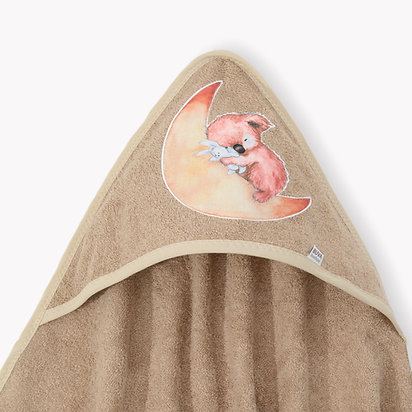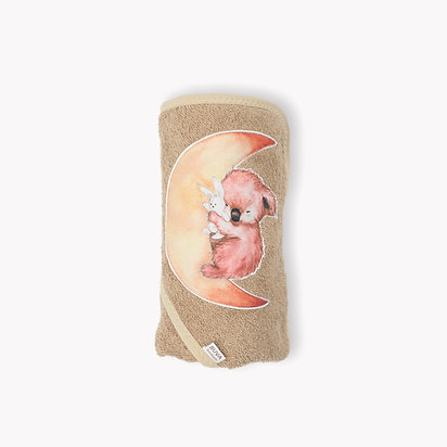 aplicatie urs coala roz dormind cu un iepuras pe semilunaCertificat OEKO-TEX (Standard 100 Confidence in Textiles)Standardul OEKO-TEX® 100 este un sistem independent de testare si certificare pentru materii prime textile, produse intermediare si finite în toate etapele de productie.Culoare: cacaoDesign: aplicatie urs koala rozDensitate: 350 g/mp