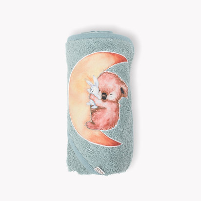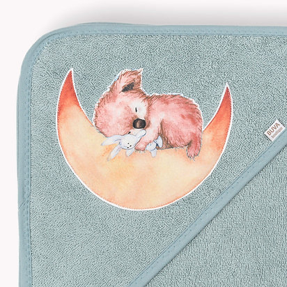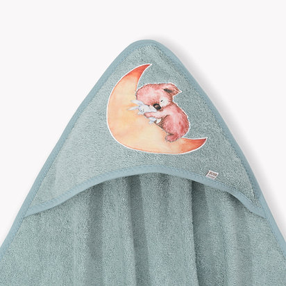aplicatie urs coala roz dormind cu un iepuras pe semilunaCertificat OEKO-TEX (Standard 100 Confidence in Textiles)Standardul OEKO-TEX® 100 este un sistem independent de testare si certificare pentru materii prime textile, produse intermediare si finite în toate etapele de productie.Culoare: albastru marinDesign: aplicatie urs koala rozDensitate: 350 g/mp
