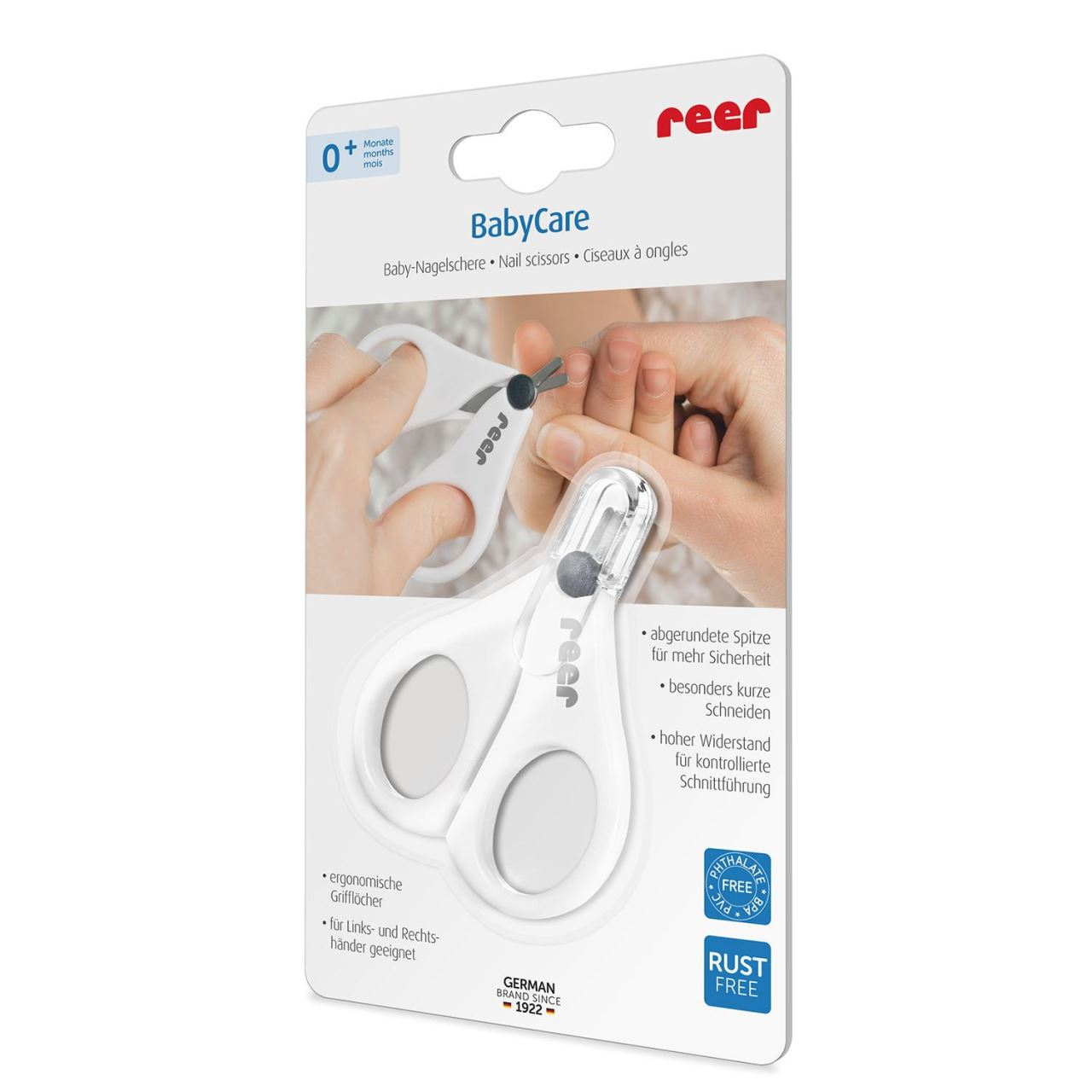 Pentru ingrijirea minutioasa si controlata a unghiilorIngrijirea copilului nou-nascut este deosebit de importanta pentru parinti. Cu ajutorul accesoriilor speciale, cum este forfecuta de unghii pentru bebelusi BabyCare, ii poti scurta unghiile bebelusului tau fara sa-ti faci griji ca-l ranesti. Dispune de o forta de taiere controlata, pentru un risc scazut de ranire. Cu foarfecele de unghii BabyCare de la Reer, care sunt adaptate individual nevoilor speciale ale celor mici, poti realiza fara probleme o manichiura si pedichiura blande. Rezistenta mare la taiere si lamele deosebit de scurte garanteaza o taiere controlata si scurtarea precisa a unghiilor bebelusului.Manevrare usoara, depozitare sigura si igienicaPe langa performanțele excelente de taiere, aceste foarfece de unghii pentru bebelusi sunt si foarte ușor de utilizat, atat pentru stangaci, cat si pentru dreptaci. Manerele cu forma ergonomica cu gauri mari pentru degete asigura o prindere optima si sigura in fiecare pozitie de taiere. Forfecuta are un capac de protectie robust pentru transport in siguranta si o protejeaza de deteriorare și murdarie.Specificatii produs:- ideala pentru ingrijirea sigura a unghiilor bebelusilor- lame scurte si rotunjite (varf bont)- forta de taiere controlata pentru un risc scazut de ranire- manere cu forma ergonomica, cu gauri mari pentru degete- cu capac de protectie pentru transport si depozitare- material: otel inoxidabil/plastic- lungime totala: aproximativ 8 cm- fara substante nocive (ftalati, PVC sau BPA)