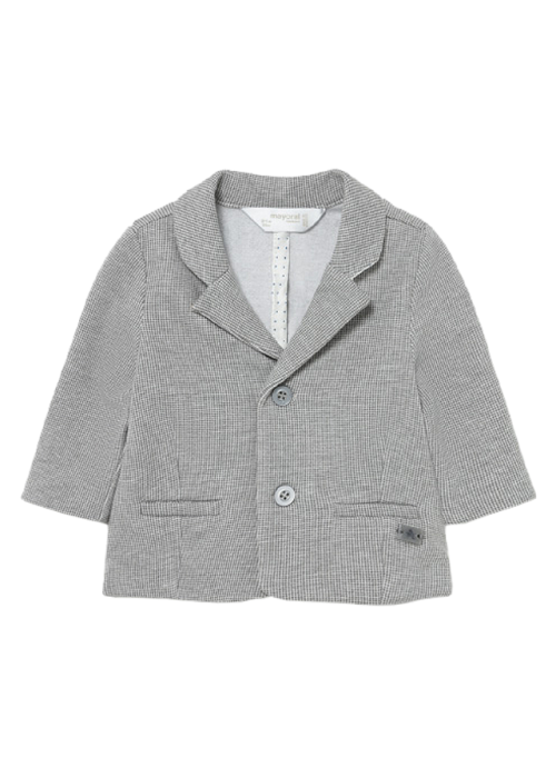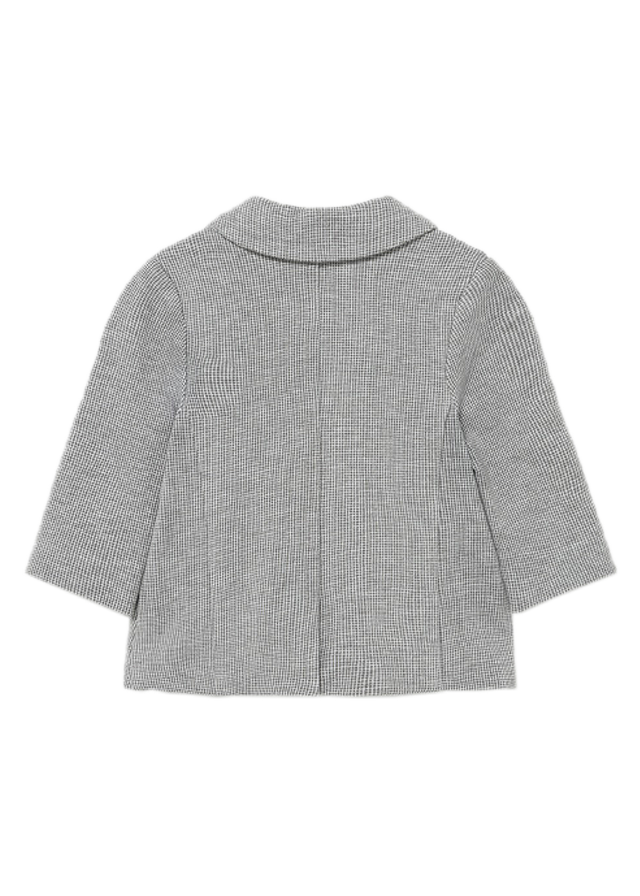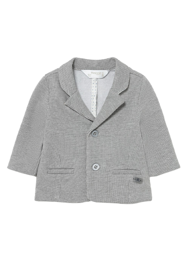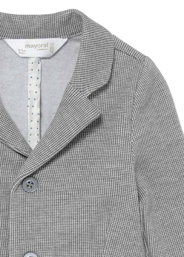 Jacheta cu revere - Gri Jacheta cu maneca lunga pentru baiat nou-nascut, are un guler cu rever si inchidere cu nasturi pe partea din fata.
