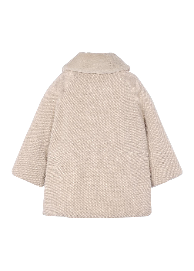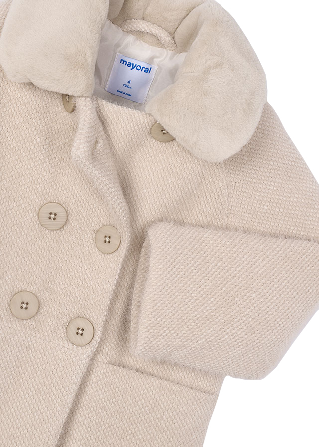 Paltonul este elegant, are maneca lunga si gulerul din blanita.Materialul este pufos, perfect pentru tinutele mai calduroase.