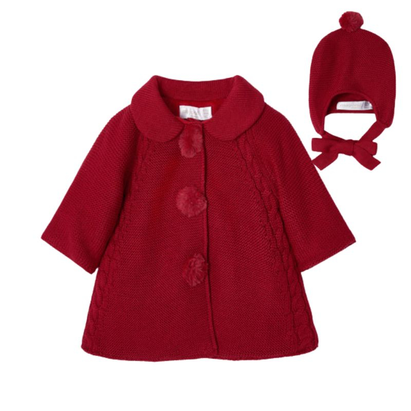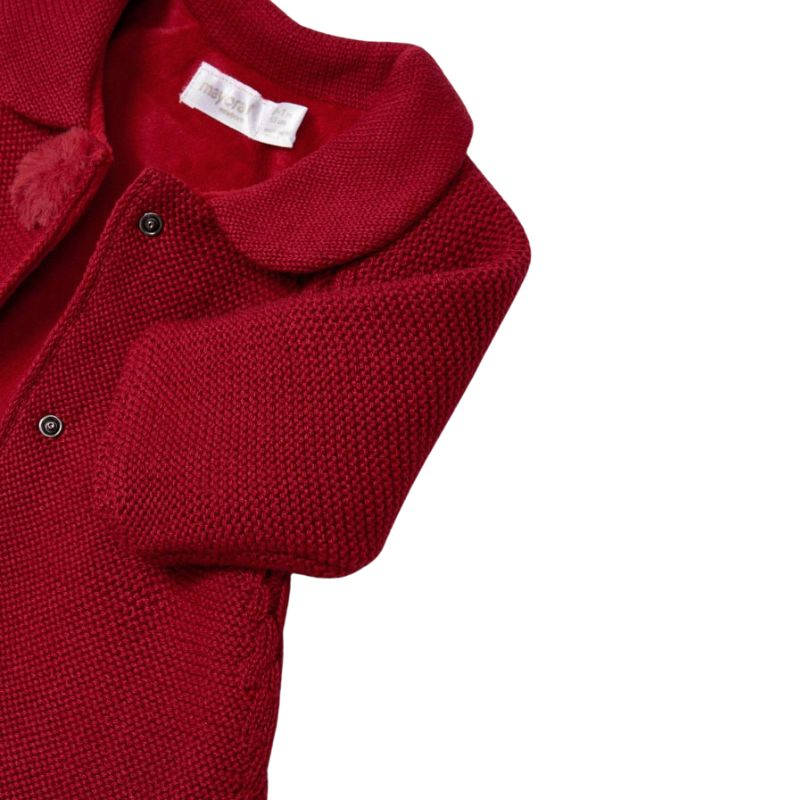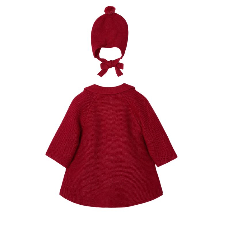 Palton tricotat + Caciula - GrenaPaltonul cu maneca lunga are gulerul rotund si se inchide cu capse ascunse pe partea frontala, pentru a permite imbracarea mai usoara.Caciula este din material calduros si flexibil, care garanteaza o ajustare perfecta pe cap si un confort maxim pentru protejarea impotriva frigului.Material: palton - exterior - 60% bumbac / 40% fibre acrilice captuseala - 100% poliester caciula - exterior - 60% bumbac / 40% fibre acrilice captuseala - 60% bumbac / 40% fibre acriliceCuloare: grena