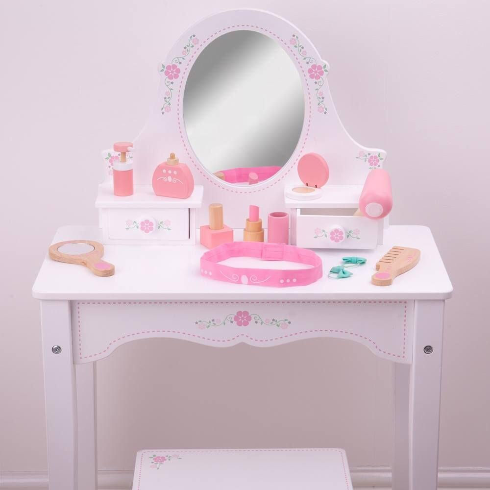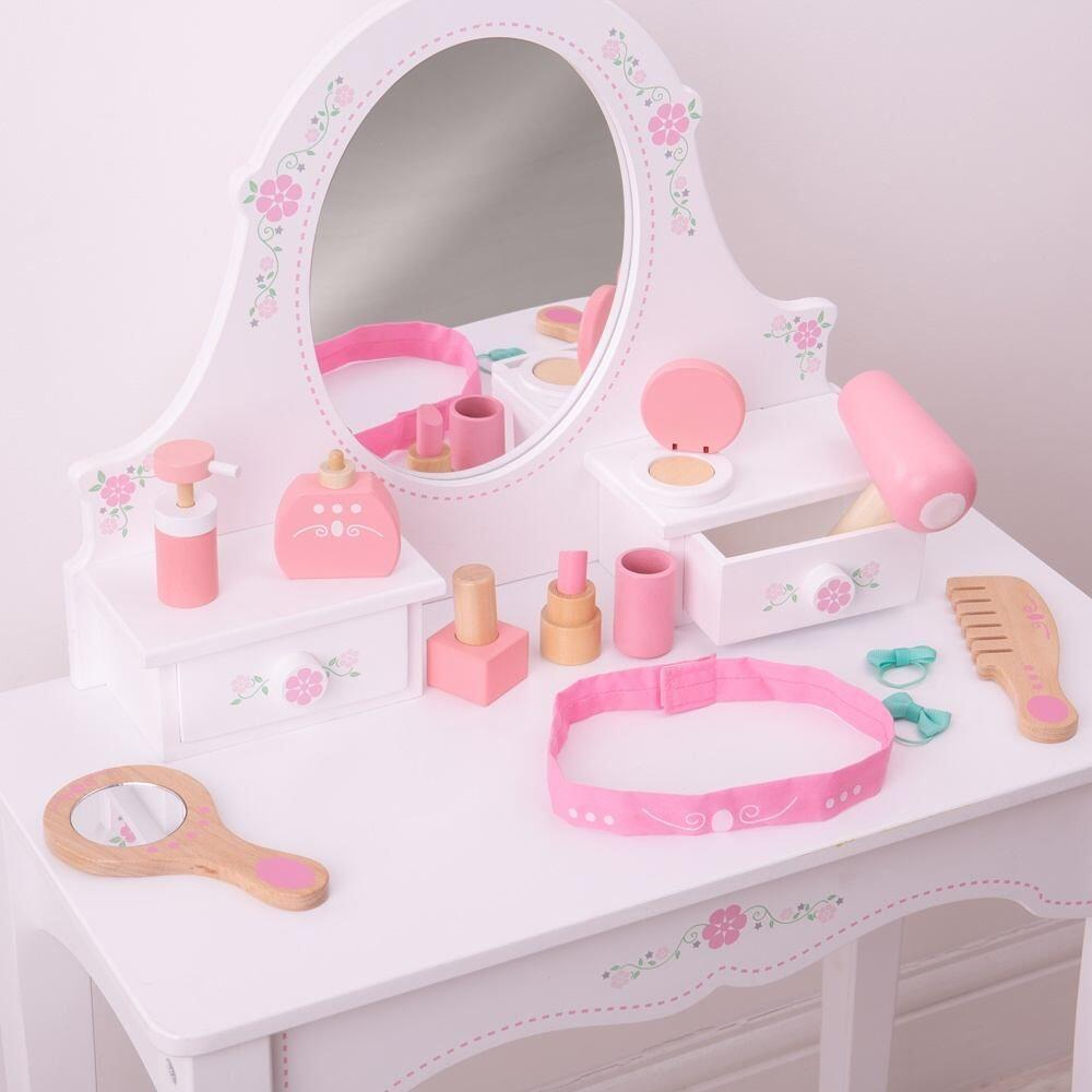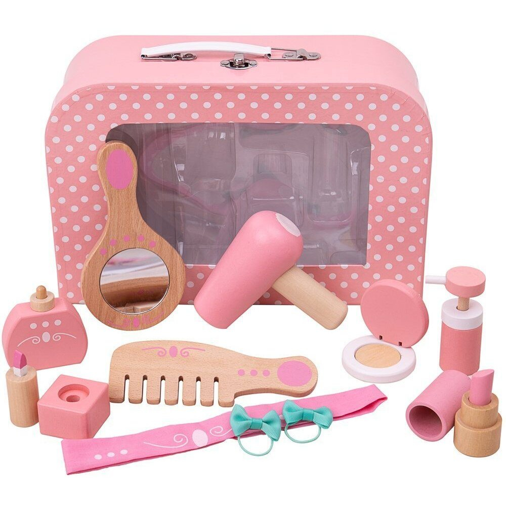 - oglinda    - uscator de par    - pudra    - bentita     - 2 elastice    - pieptan    - parfum     - crema de maini    - oja    - ruj Material: lemnVarsta: +3 ani
