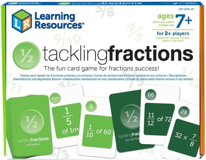 cardurile sunt impartite in 2 faze codificate prin culori, ceea ce face usor de identificat tipul de fractie pe care un elev o exerseaza – fractii unitare (verde deschis) si fractii neunitare (verde inchis)