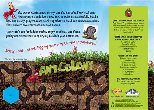Colonia de furnici este un joc cooperativ. Asta inseamna ca toti jucatorii sunt colegi de echipa si au acelasi scop. Ori castiga toata lumea, ori toata lumea pierde!