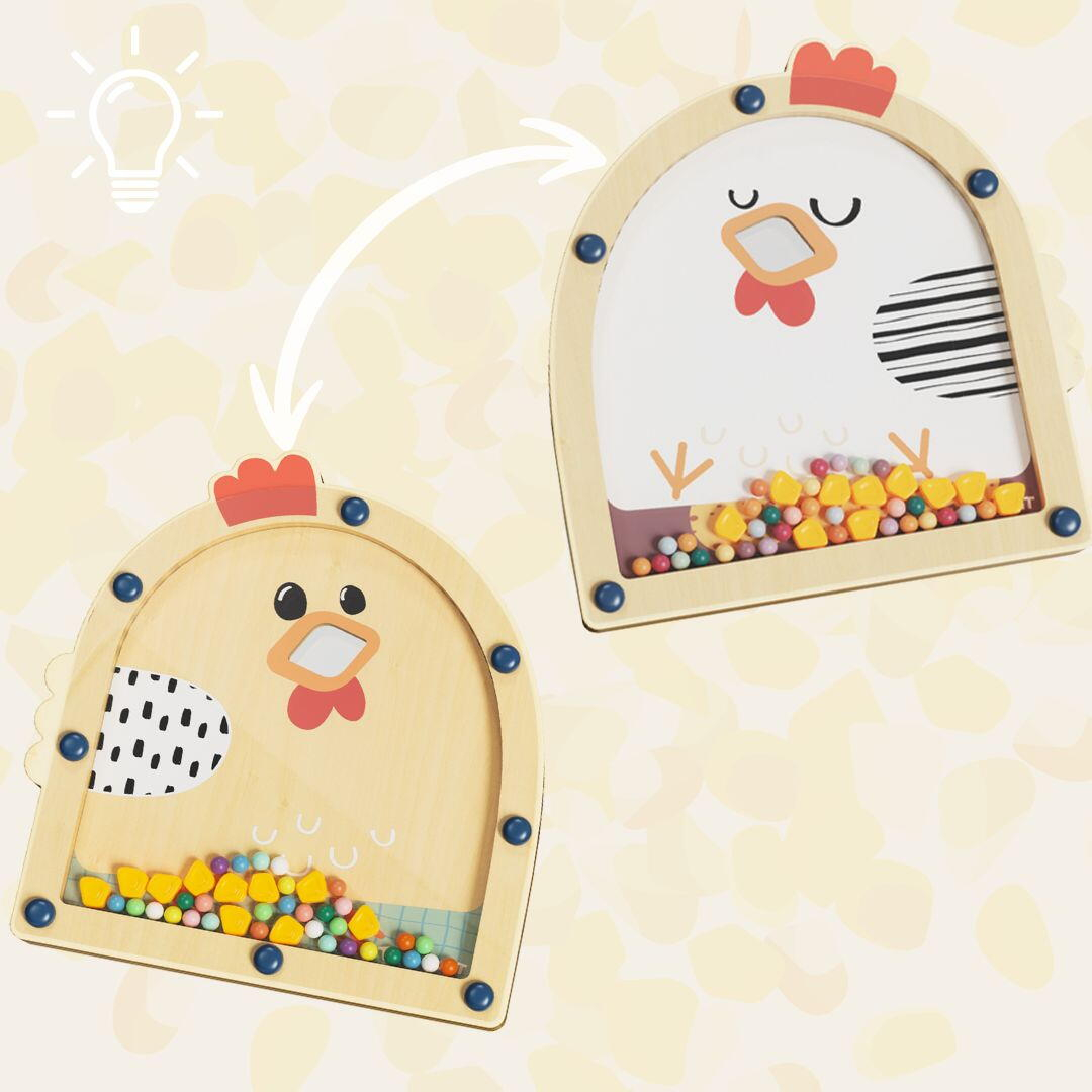 copiii pot hrani gaina cu boabe de porumb, agitand aripile acesteia si observand cum boabele cad in ciocul gainii, stimuland jocul imaginar si creativ