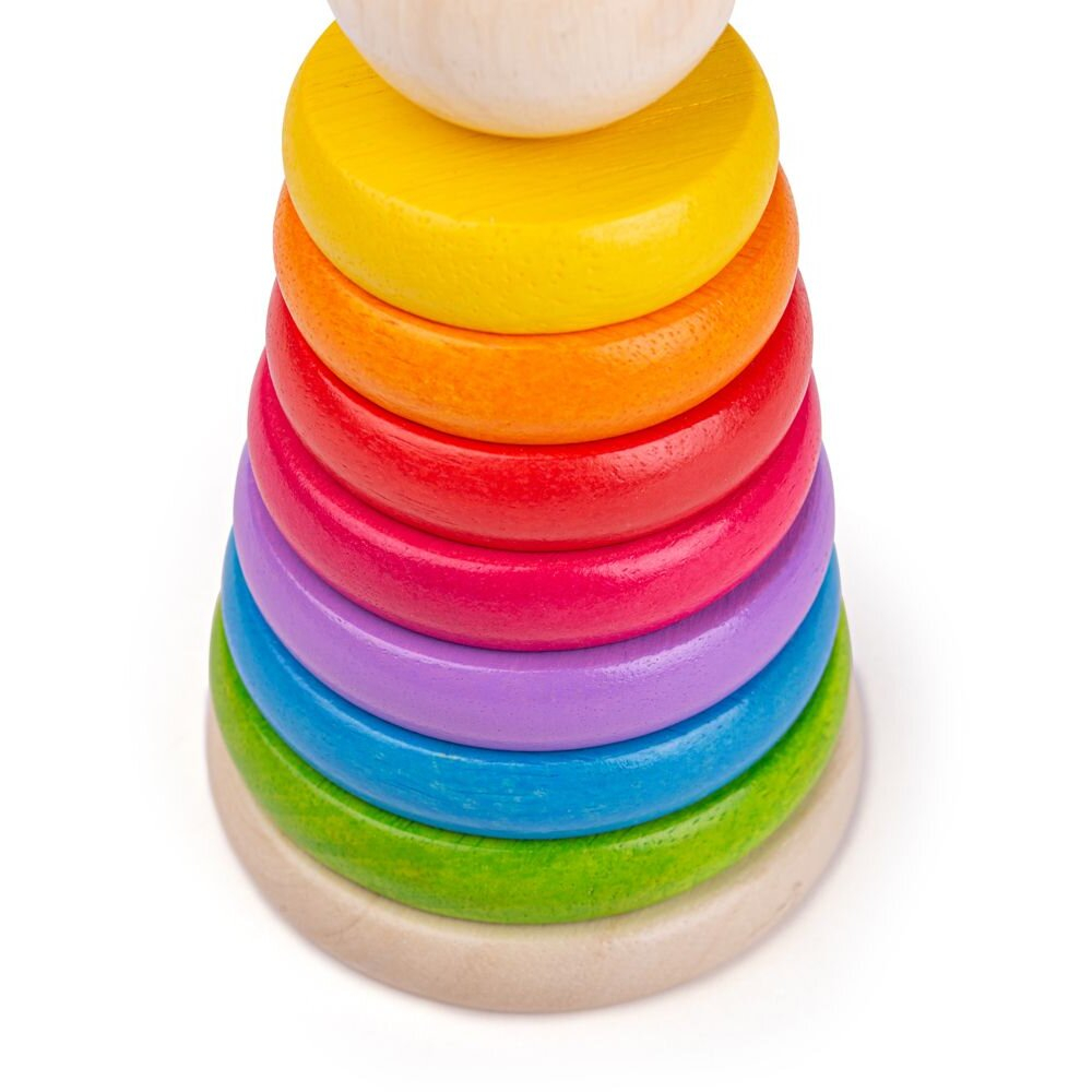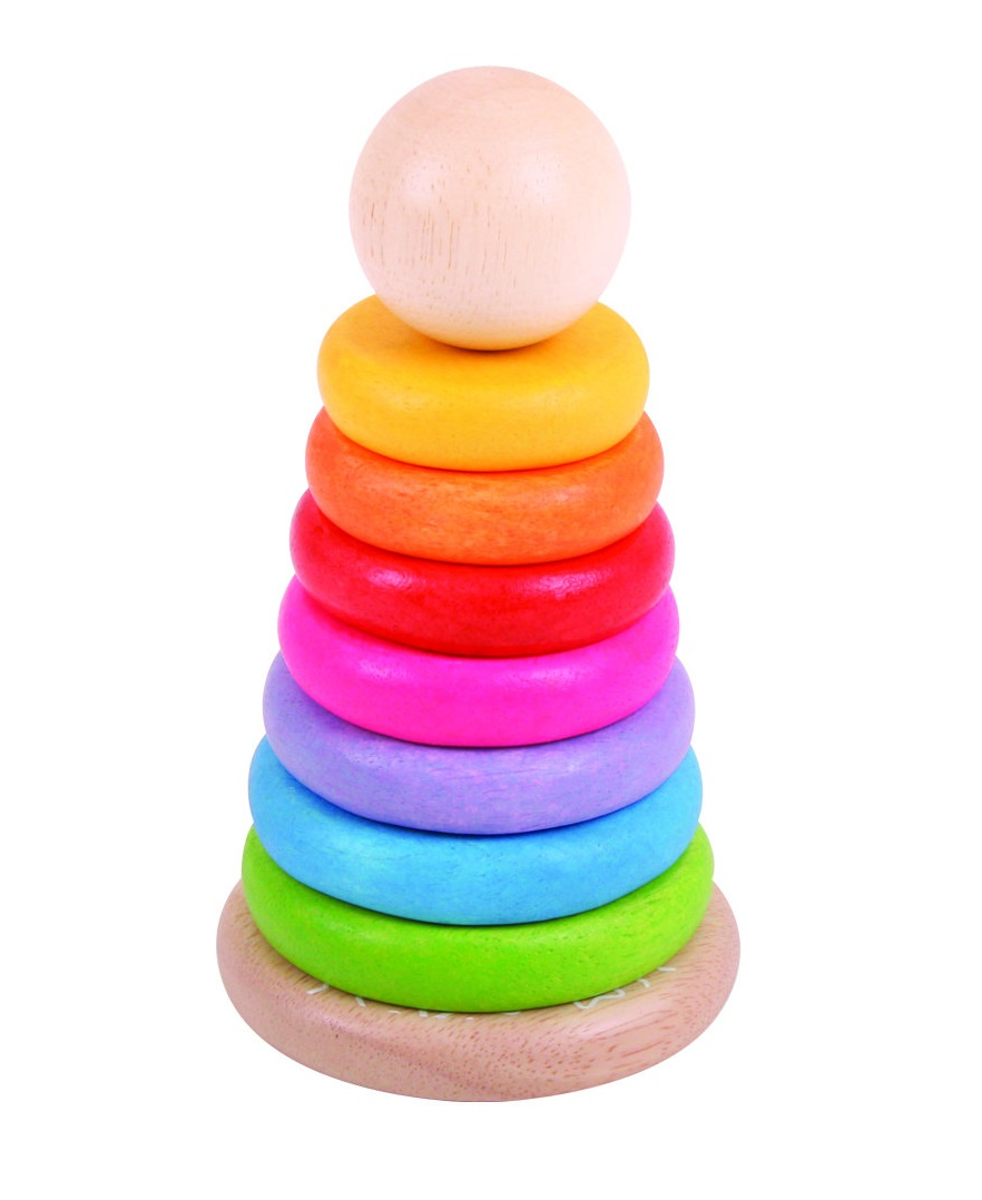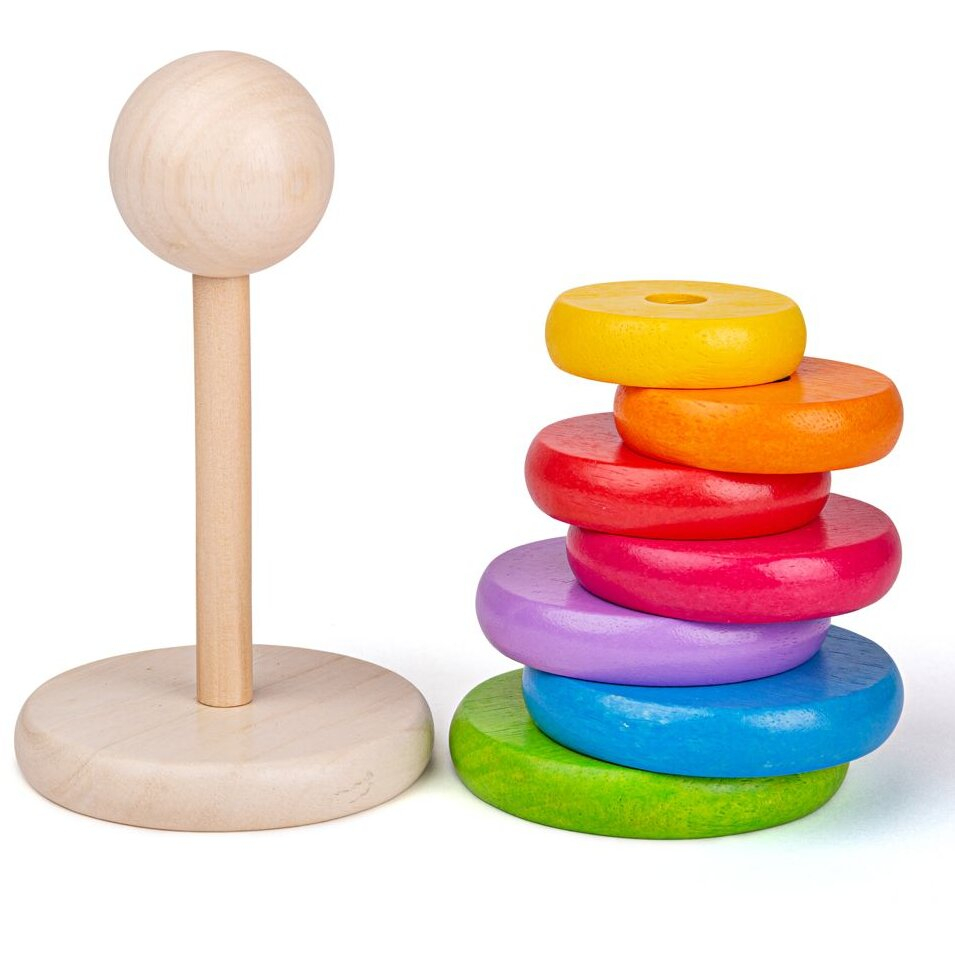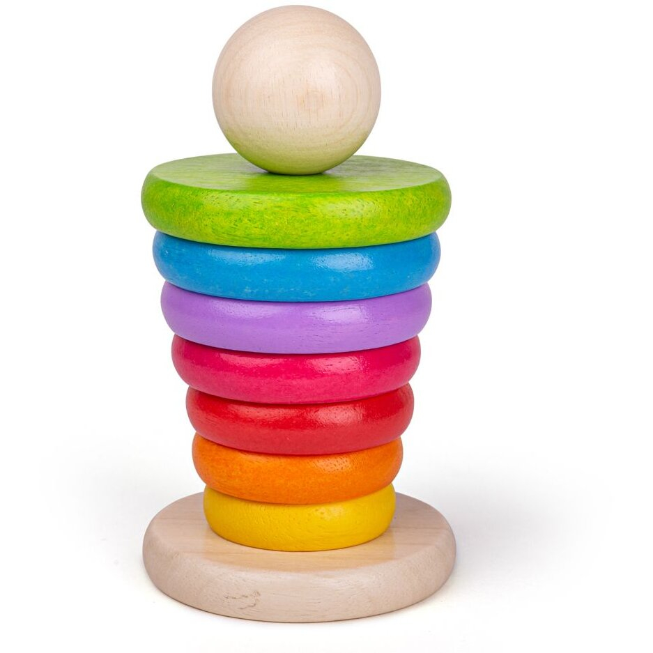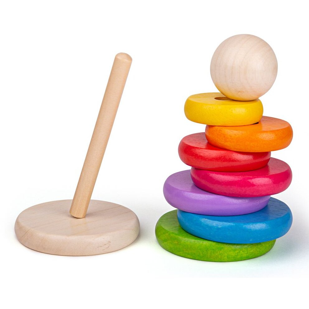 Piramida din lemn - CurcubeulConstruieste piramida folosind cele sapte cercuri viu colorate. Analizeaza-le cu atentie si aseaza-le in ordine descrescatoare din punct de vedere al dimensiunii.La baza trebuie pusa cea mai mare piesa.