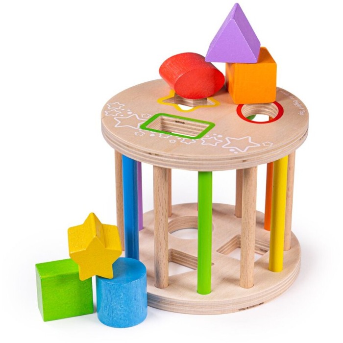 Cu ajutorul jocului, copilul invata sa asocieze forme, culori si modele, dezvoltandu-si in acelasi timp indemanarea.Este fabricat din materiale de inalta calitate conform cu standardele europene de siguranta a copilului.Setul contine: - 6 forme geometrice - diverse culori - cadru pentru sortareMaterial: lemnVarsta: +1 anCuloare: mov / roz / albastru / portocaliu / verde / rosuDimensiune: 15 x 12,5 x 15 cm