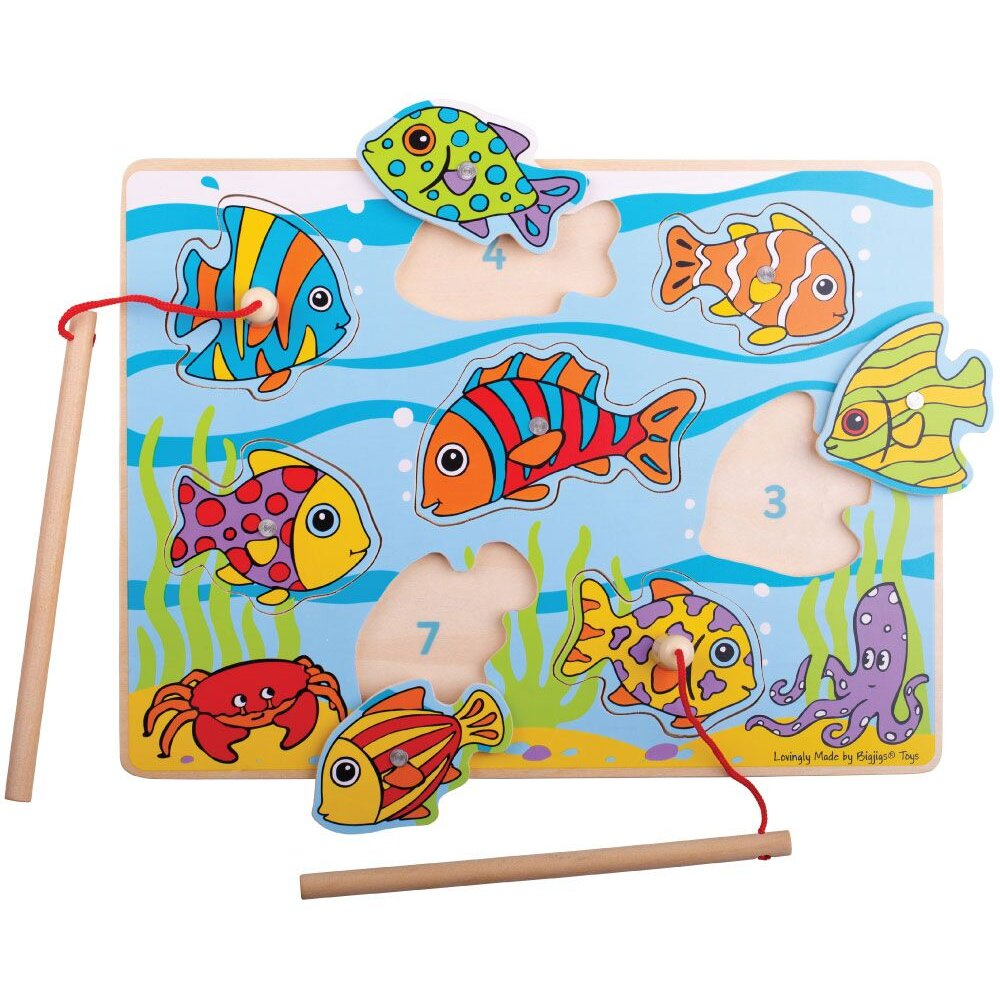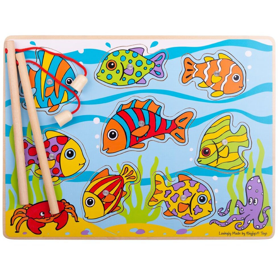 Puzzle magnetic - Pestisorii nazdravaniPuzzle-ul magnetic, ofera copilului tau senzatia unui acvariu impresionant. El va putea pescui pestisorii de pe baza de lemn cu ajutorul unei undite. Jocul necesita o mare concentrare, deoarece pestisorii vor trebui sa fie pusi inapoi la locul lor. Pe langa indemanare, copilul isi va imbunatati si cunostintele, el fiind nevoit sa recunoasca fiecare animal acvatic pescuit.Setul cuprinde: