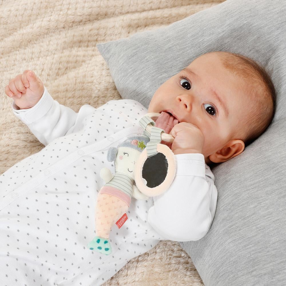 materialul moale, placut la atingere, culorile vii, precum si oglinjoara ii vor capta atentia copilasului tau