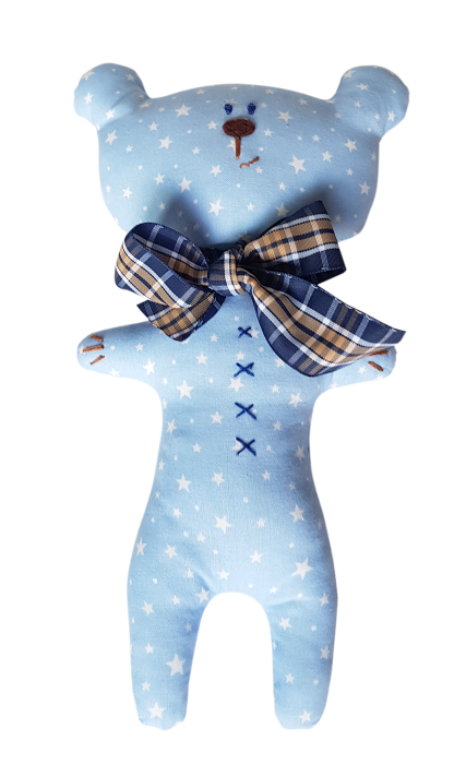 Ursulet panza cu funditaUrsuletul este fabricat in serie mica, lucrat cu drag si atentie, intr-un atelier pentru jucarii handmade. Detaliile fetei si de pe partea din fata sunt cusute manual, iar asta ii confera jucariei unicitate.Ursuletii nu sunt identici si pot fi lucrati si la comanda in decurs de cateva zile. Material: exterior - 80% bumbac / 20% poliester interior - puf siliconic superballVarsta: +0 luniCuloare: bleu / roz / turcoaz / cremDimensiune: 22 cmIntretinere: Spalare: automata / manuala Temperatura: max. 30°C Interzis: albirea si uscarea la tambur Uscare: se usuca pe o suprafata planaFabricat in RomaniaAlte inormatii:Va rugam ca la finalizarea comenzii, la rubrica Observatii, sa specificati culoarea dorita.