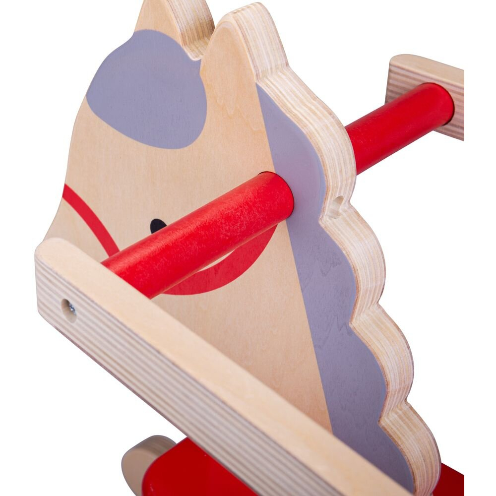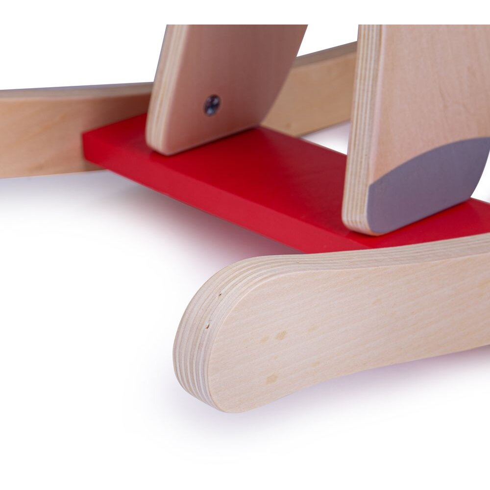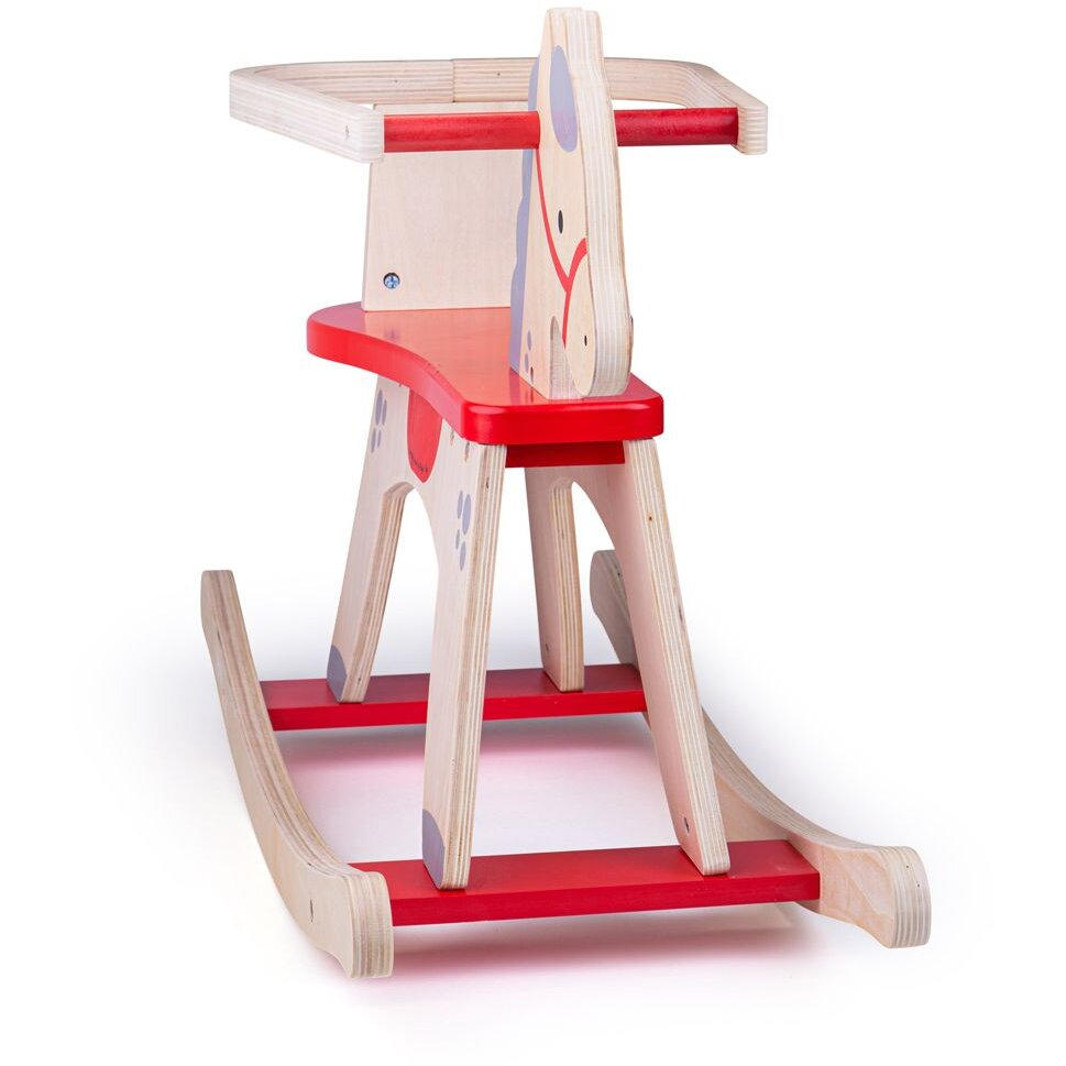 Caracteristici: - Combina stilul retro cu cel modern. - Este realizata din lemn de cea mai buna calitate si vopsita cu vopsea non-toxica. - Contribuie la dezvoltarea echilibrului, a coordonarii si a musculaturii picioruselor. - Prezinta un sistem de protectie care poate fi scos pe masura ce copilasul creste. - Este prevazut cu 2 manere solide din lemn ce vor fi de un real ajutor micutului tau, in pastrarea echilibrului in timpul balansului, dar si ca sprijin la urcare si coborare. - Este in conformitate cu standardele Europene curente de siguranta.Atentie! Necesita un minim de asamblare de catre un adult.Material: lemnVarsta: +1 an