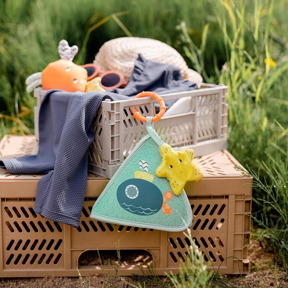 jucaria este prevazuta cu inel de prindere, astfel se poate atasa cu usurinta la patut, carucior, la masina sau pur si simplu pentru a putea apuca