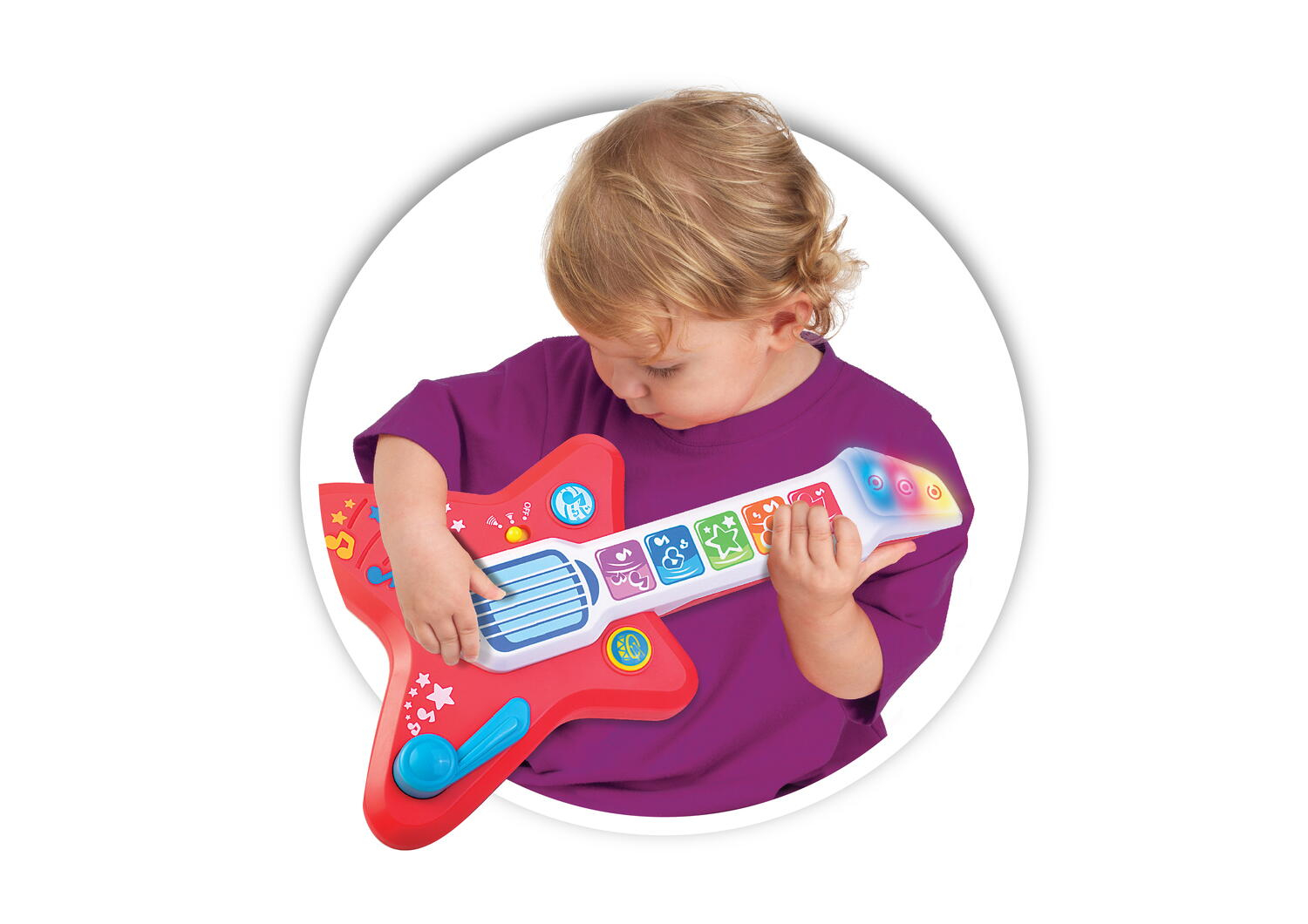 Contine 6 cantece preinregistrate care incurajeaza recunoasterea melodiilor si sustin jocul activ