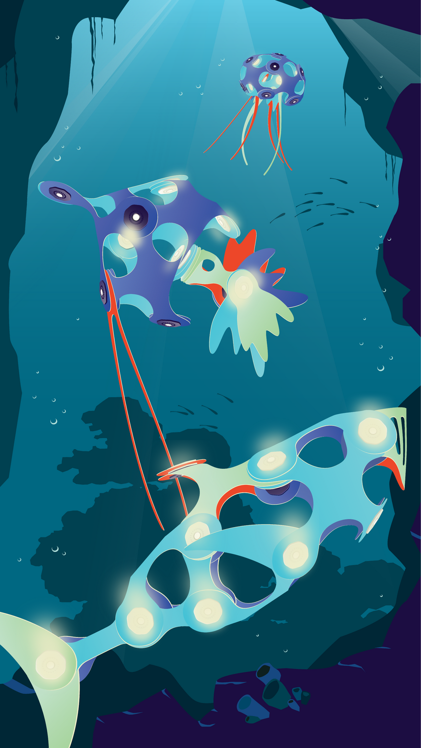 un set de constructie flexibil si magnetic, care straluceste in intuneric, echipat cu aripioare si tentacule care aduc la viata minunile subacvatice