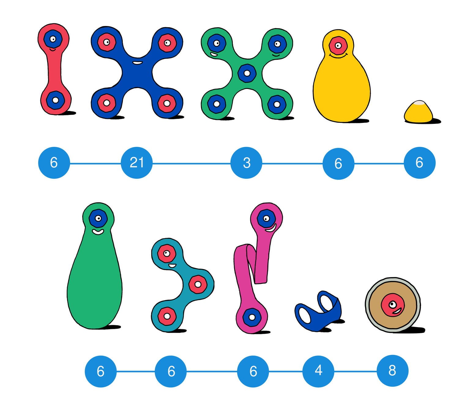 piesele Clixo sunt flexibile, ceea ce inseamna ca o singura forma se poate indoi si conecta in multe moduri diferite