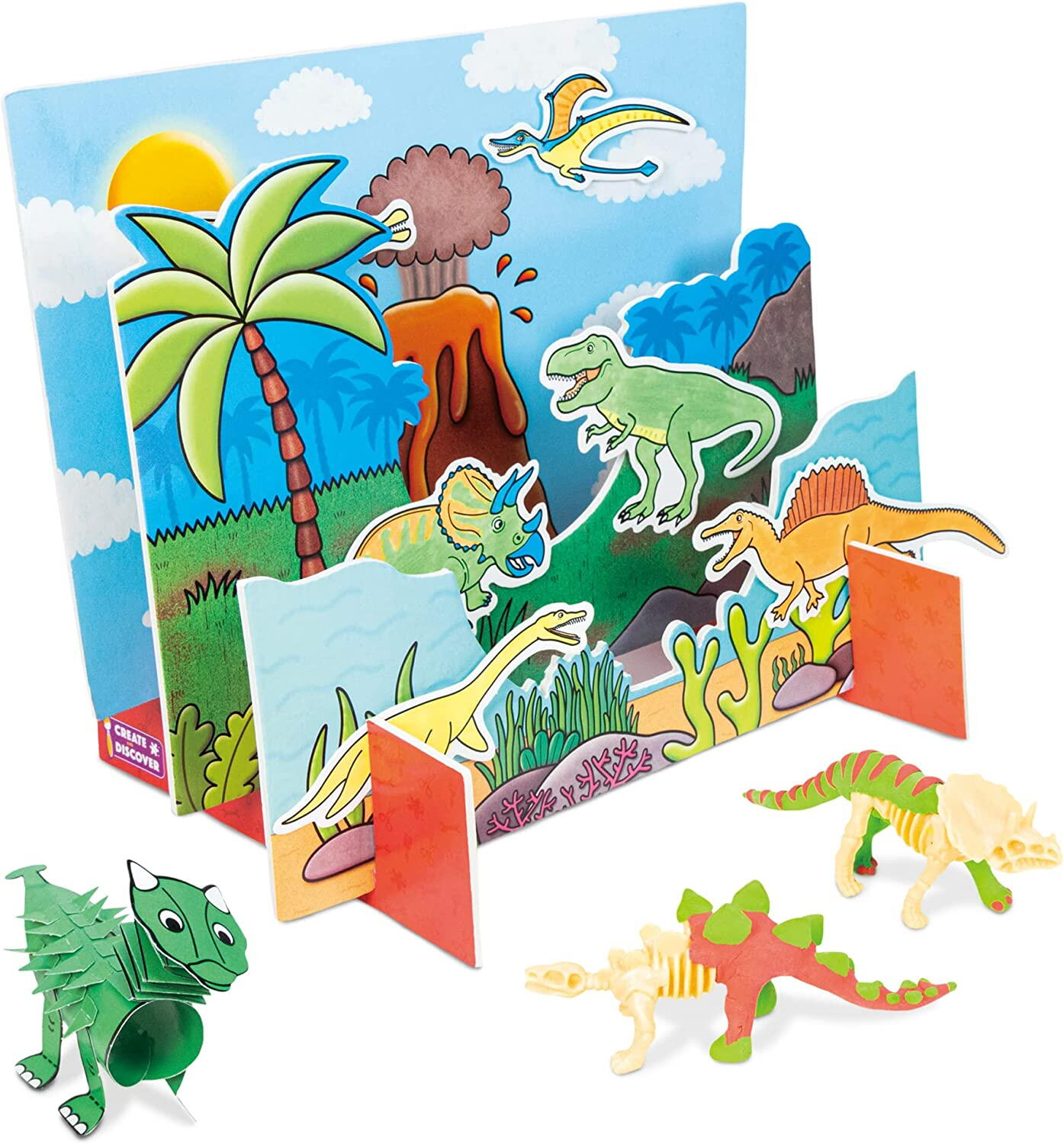 cu ajutorul acestui kit copilasii vor invata sa descopere lumea dinozaurilor intr-un mod creativ, avand la baza modelul STEAM