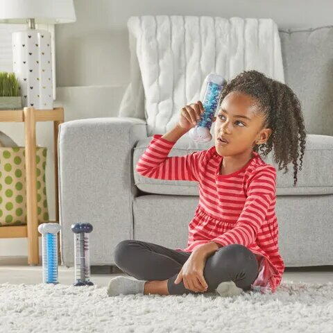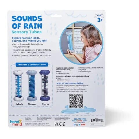 Eprubetele senzoriale – Sunete de ploaie sunt instrumente multisenzoriale menite sa stimuleze auzul, vederea si perceptia tactila, aducand in spatiile de joaca sau in colturile de linistire o atmosfera calma, relaxanta si sigura