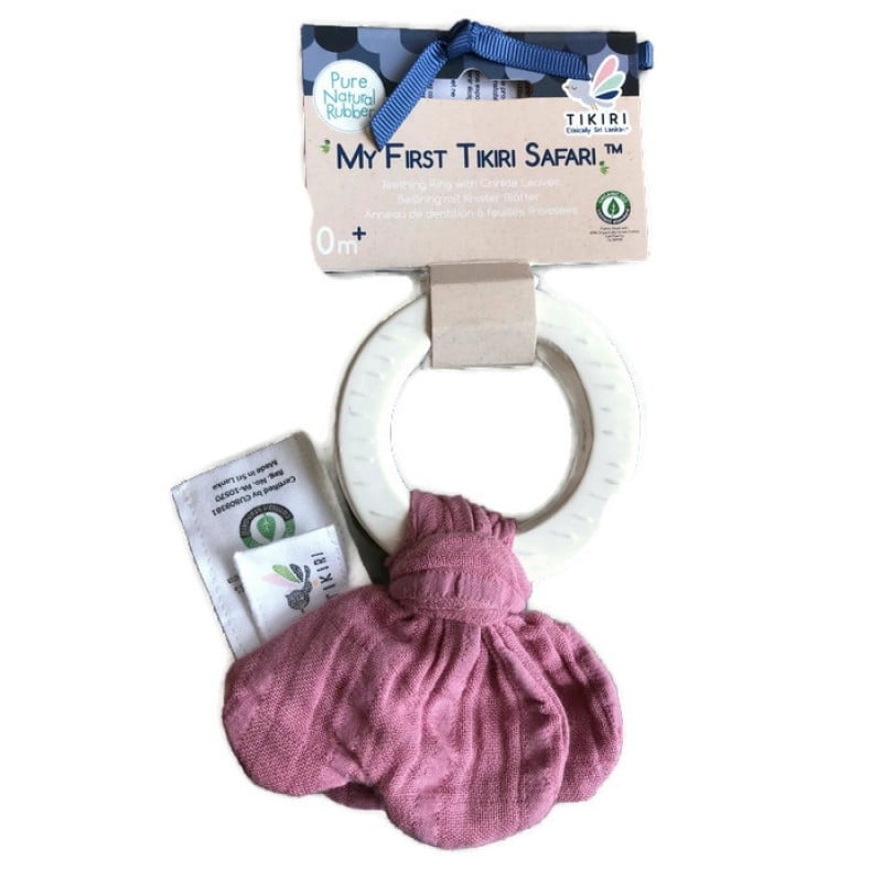 Inel Safari Dentitie Pink Inelul de cauciuc natural are atasata o fundita din bumbac organic. Texturi diferite pentru a stimul simturile si a calma senzatiile dificile din timpul eruptiei dentare.Culoare: rozVarsta recomandata: 0+
