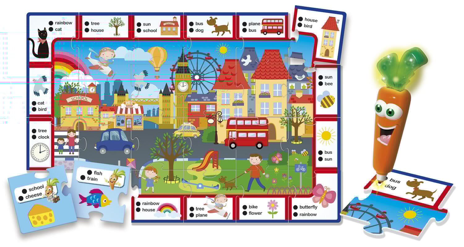 Pixul Carotina este instrumentul care il va ajuta pe copilul tau sa ofere raspunsuri corecte in timp ce se joaca cu cardurile cu intrebari. Atinge pur si simplu cu pixul interactiv si acesta va indica instantaneu daca raspunsul este corect: se va aprinde o luminita verde si vei auzi sunete pozitive. Raspunsurile incorecte vor fi indicate printr-o lumina rosie si un sunet de incurajare.