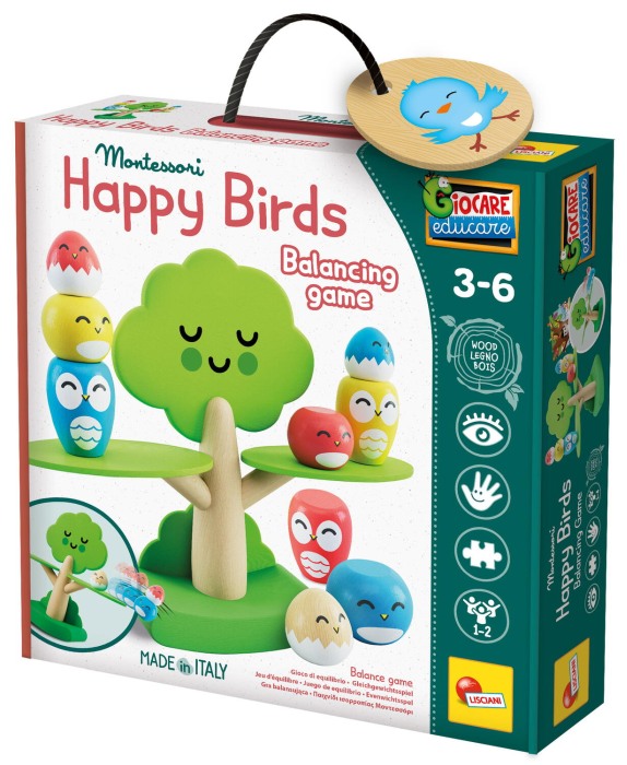 Un copac din lemn cu multe pasari pentru un joc de echilibru palpitant! Fii atent sa nu lasi pasarile sa cada!