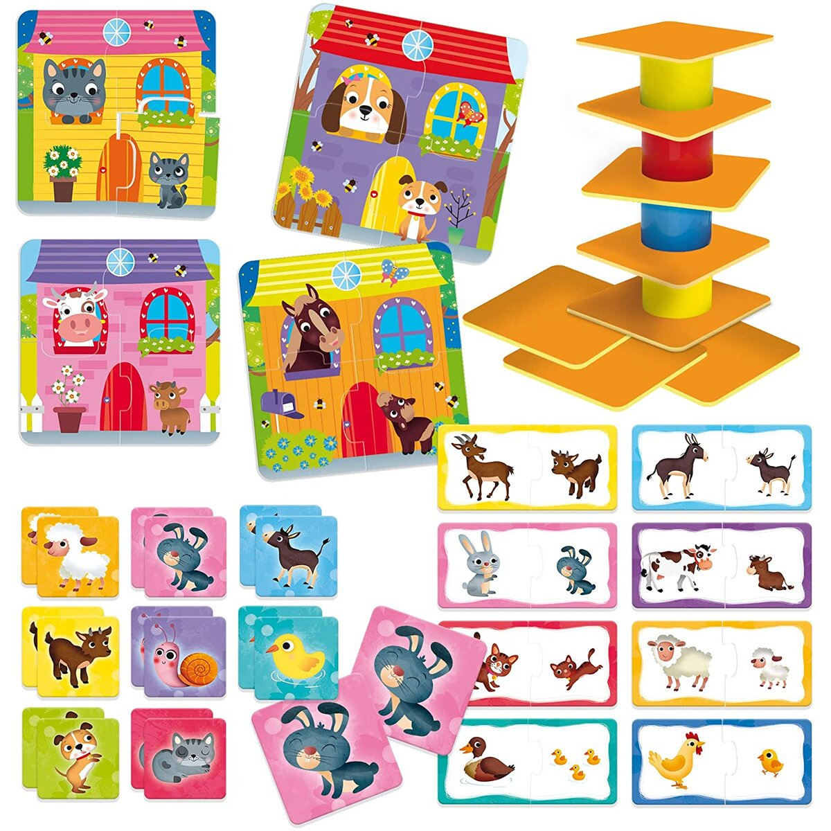 te vei bucura de multa distractie cu un singur joc: puzzle, joc de memeorie, joc de logica si turnulet colorat