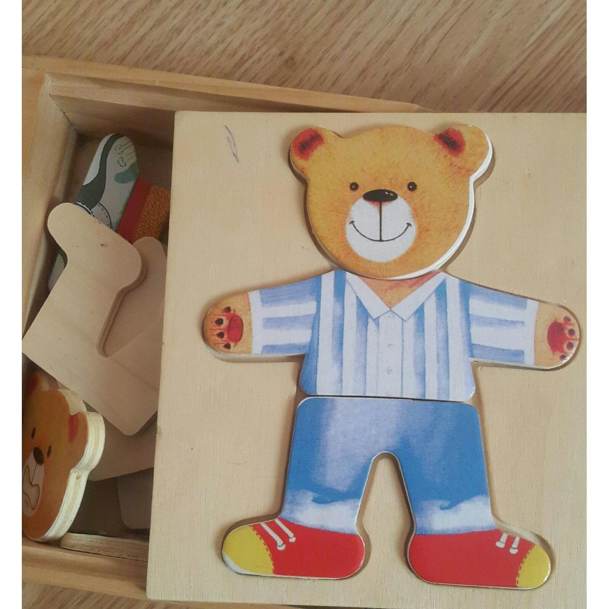 Joc de potrivire - Domnul UrsEste un joc distractiv, ce incurajeaza vorbirea la copii, si anume aceea de a potrivi piesele astfel incat sa obtina cat mai multe tinute asortate pentru tatal-urs.Domnul Urs, vine ambalat intr-o cutie de lemn ce cuprinde, piese late de lemn, cu accesorii vestimentare, frumos colorate.Setul este compatibil, cu restul pachetelor din colectia Familia ursuletilor (se poate achizitiona separat).Este ideal pentru dezvoltarea imaginatiei, abilitatilor de coordonare si a dexteritatii.Material: lemnVarsta: 3 - 6 ani