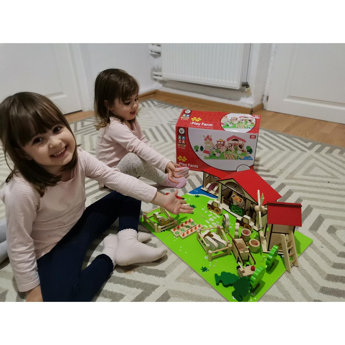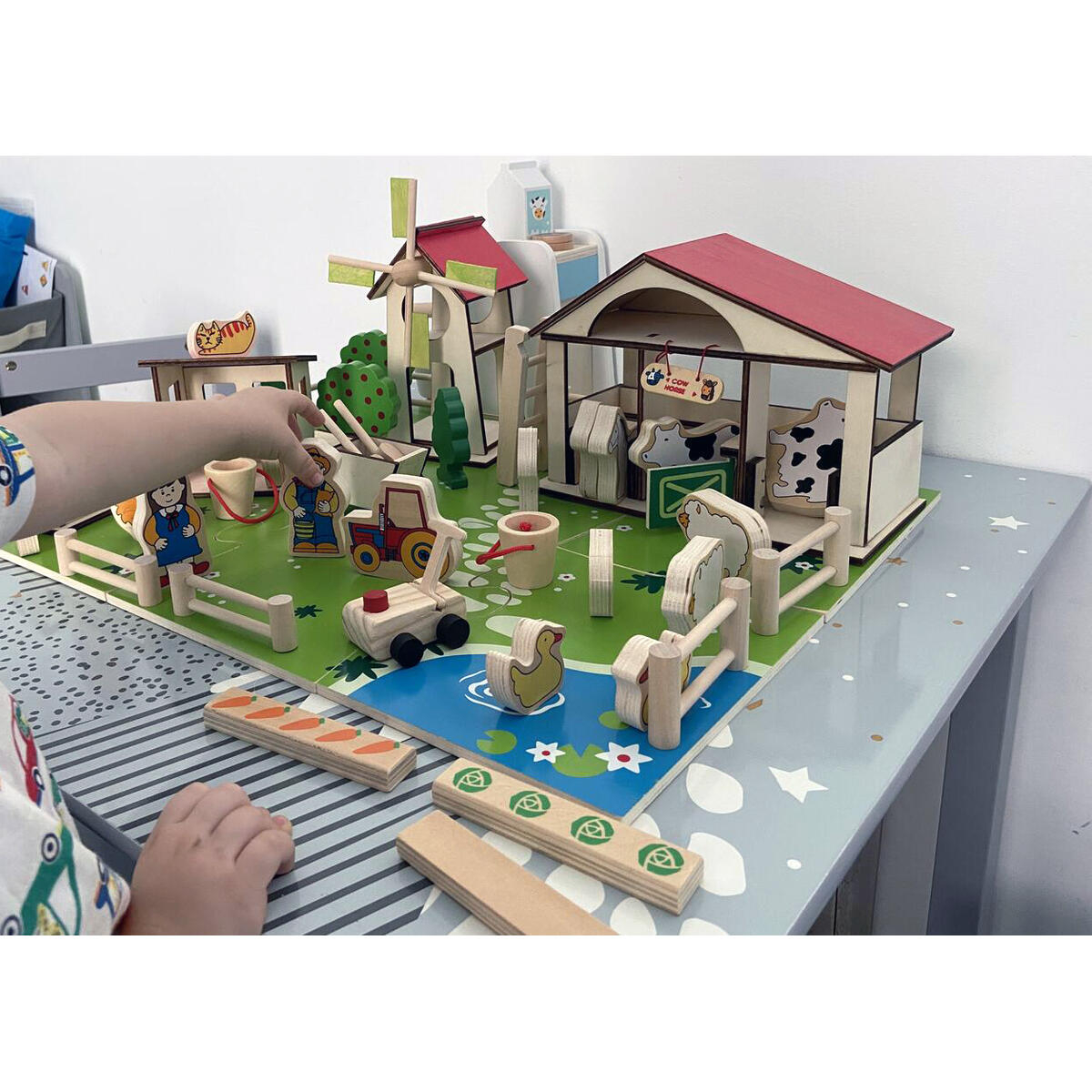 - grajd - moara de vant - parcela cu legume - adapost pentru animalute - iaz - multe animalute - ustensile de gradina - gard mobilMaterial: lemnVarsta: +3 ani