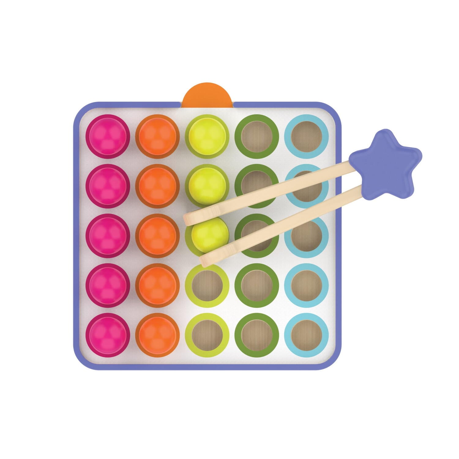 dezvoltarea motricitatii fine: penseta din lemn este adaptata mainilor mici si ajuta la exersarea coordonarii si a dexteritatii.