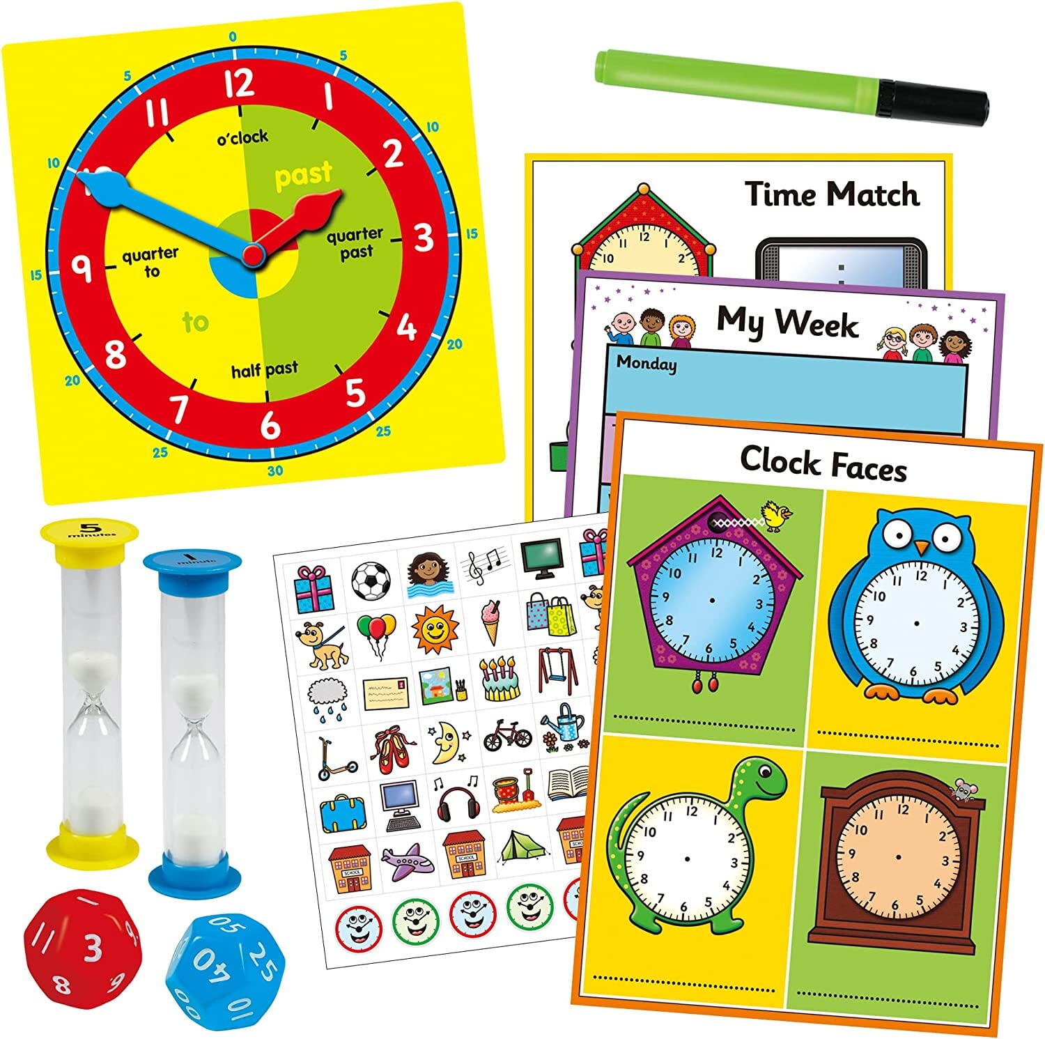 acest set ii va ajuta pe cei mici sa invete sa spuna cat e ceasul si sa masoare si sa inteleaga notiunea de timp.