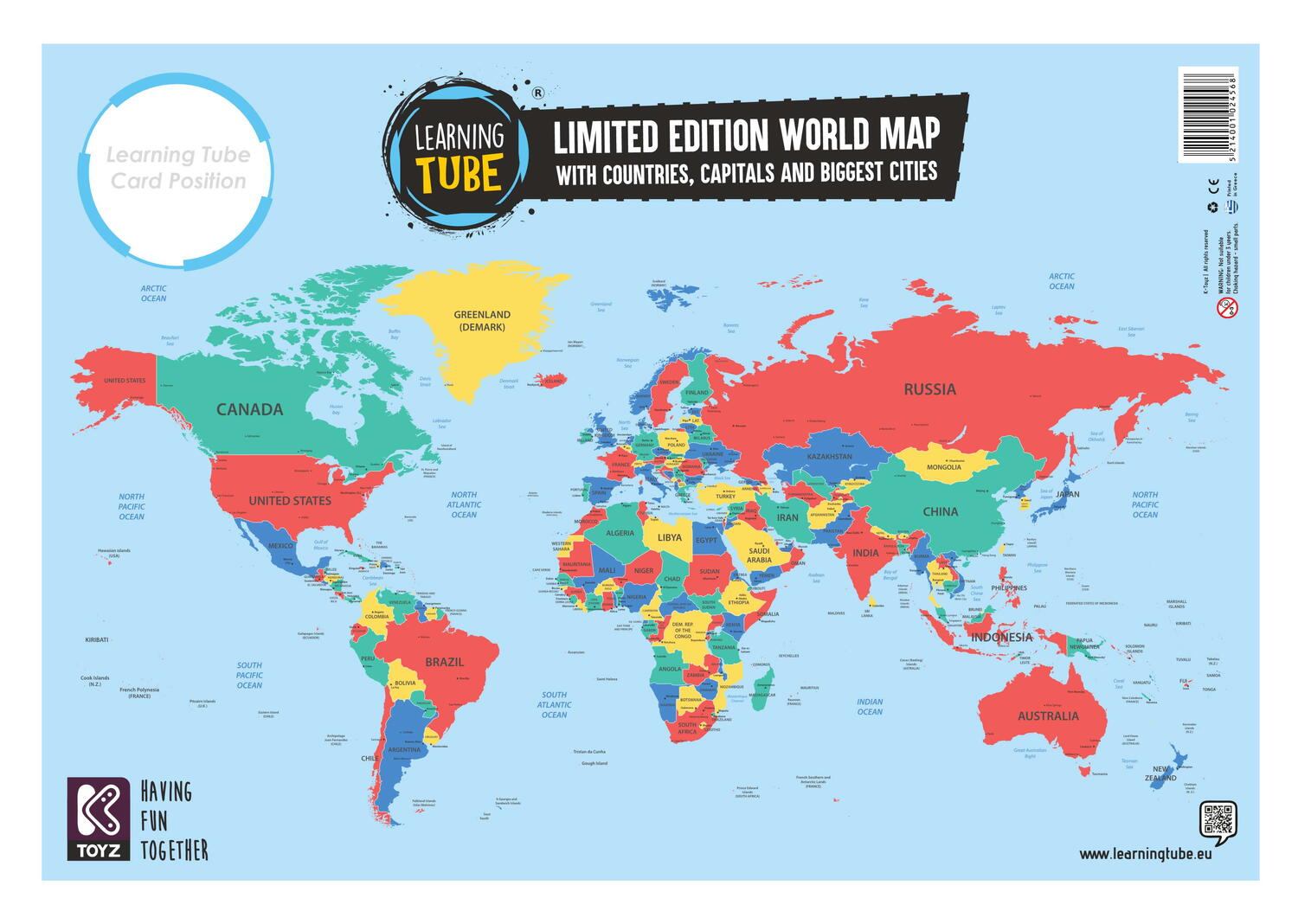 Descopera si exploreaza minunile lumii intr-un mod captivant si educativ cu jocul de masa "Steaguri si capitalele lumii" din seria Learning Tube! Acesta este disponibil in doua variante de joc una cu zar si una cu jetoane.