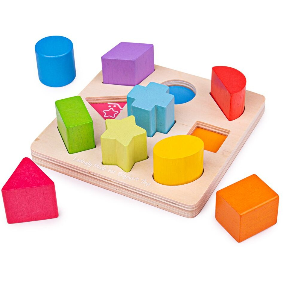 Setul este ideal pentru invatarea formelor si culorilor, jucand un rol important in dezvoltarea indemanarii si coordonarii ochi-mana.Setul cuprinde: - 9 piese - tavitaMaterial: lemnVarsta: +1 an