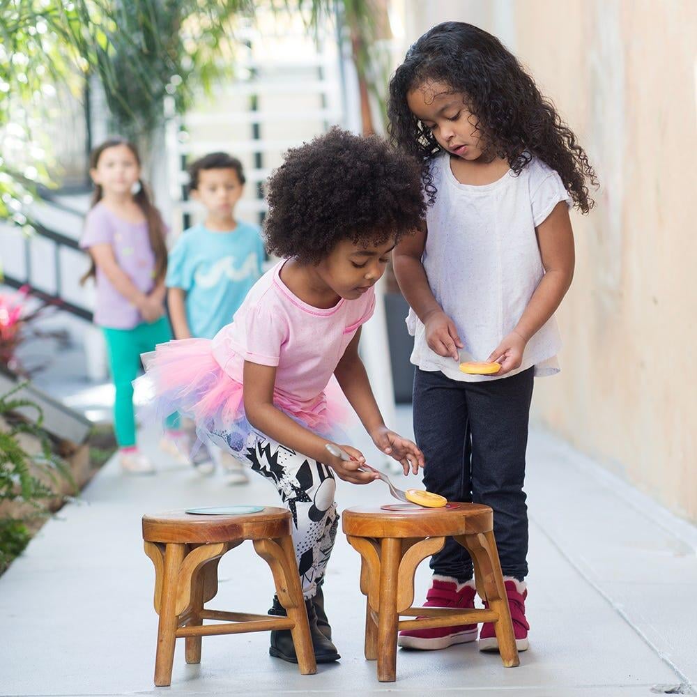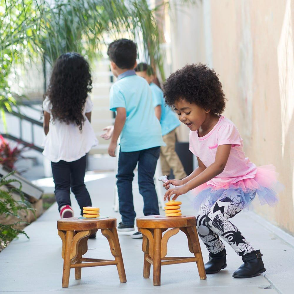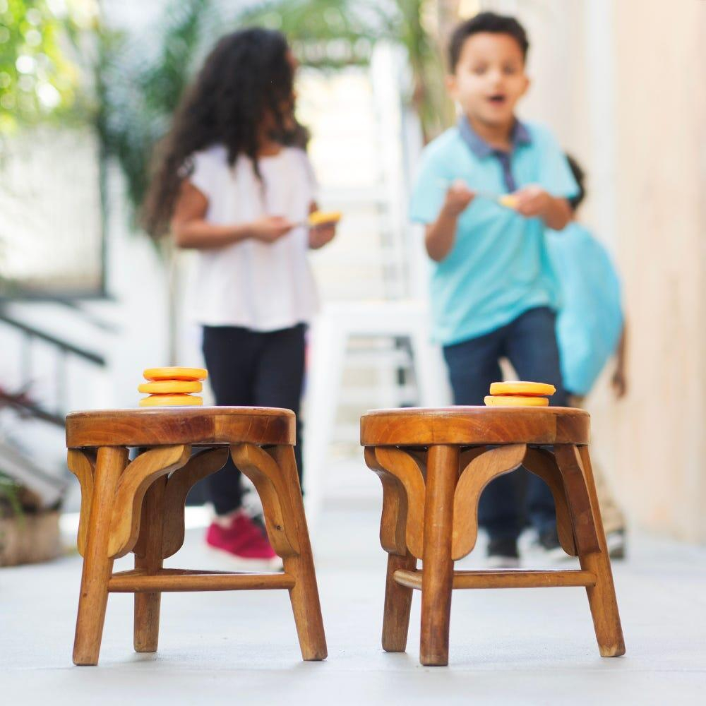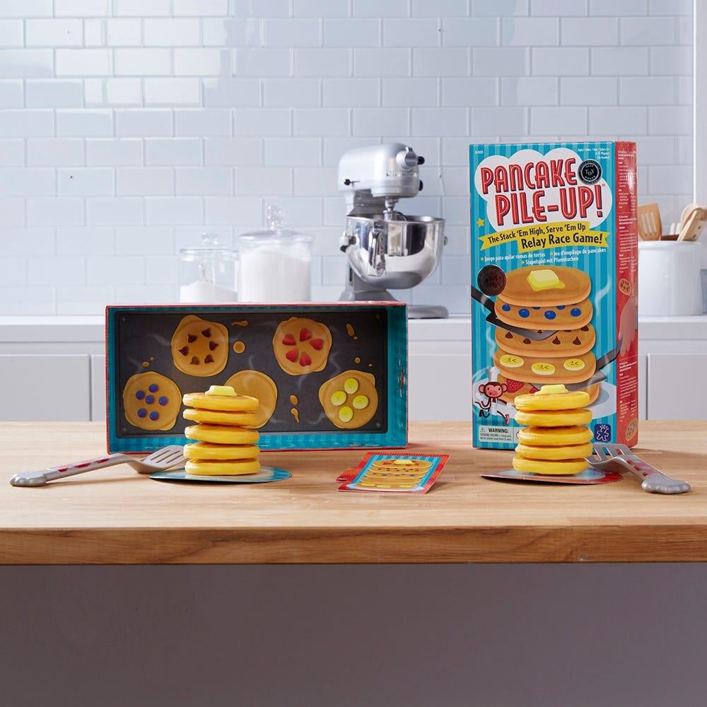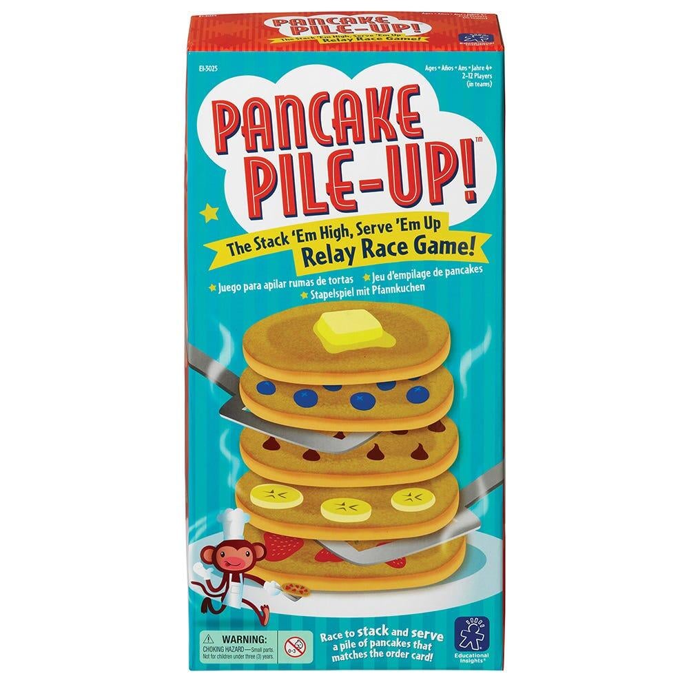 Mod de utilizare: Copiii trebuie sa aseze clatitele una cate una, in ordinea afisata pe card. Castiga echipa care a a ordonat corect clatitele si a pus prima cubuletul de unt deasupra. Jocul este ideal pentru activitati recreative in aer liber.