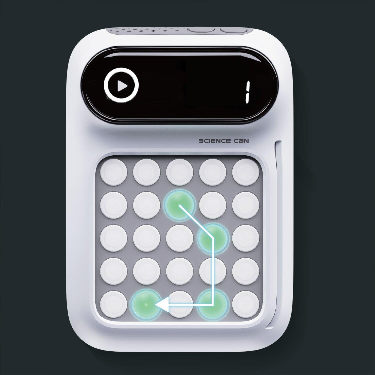 Modul Memorie secventiala – Joc interactiv in care butoanele se aprind intr-o secventa aleatorie, iar copilul trebuie sa o memoreze si sa o repete corect. Contribuie la dezvoltarea memoriei si a gandirii cognitive.