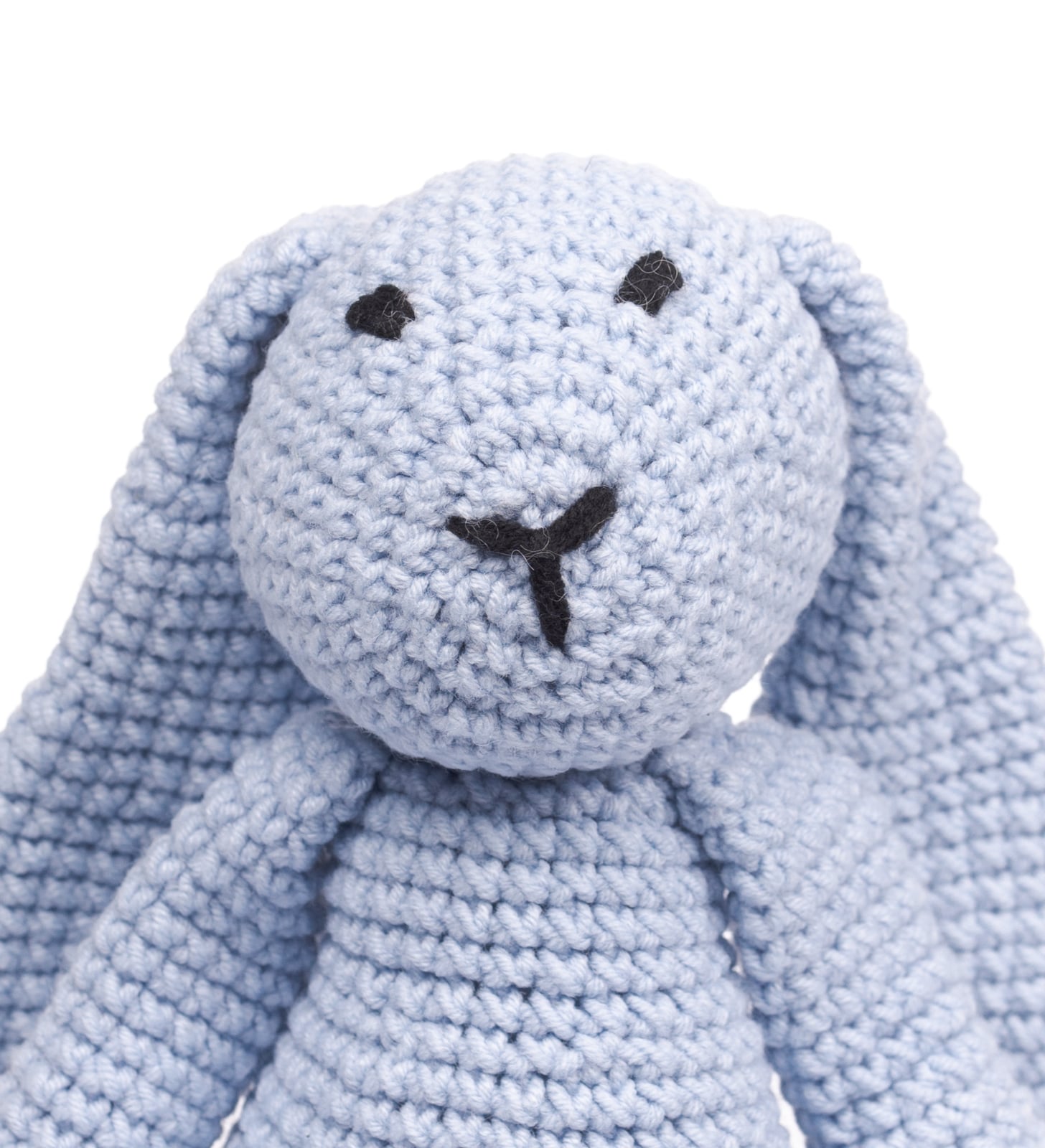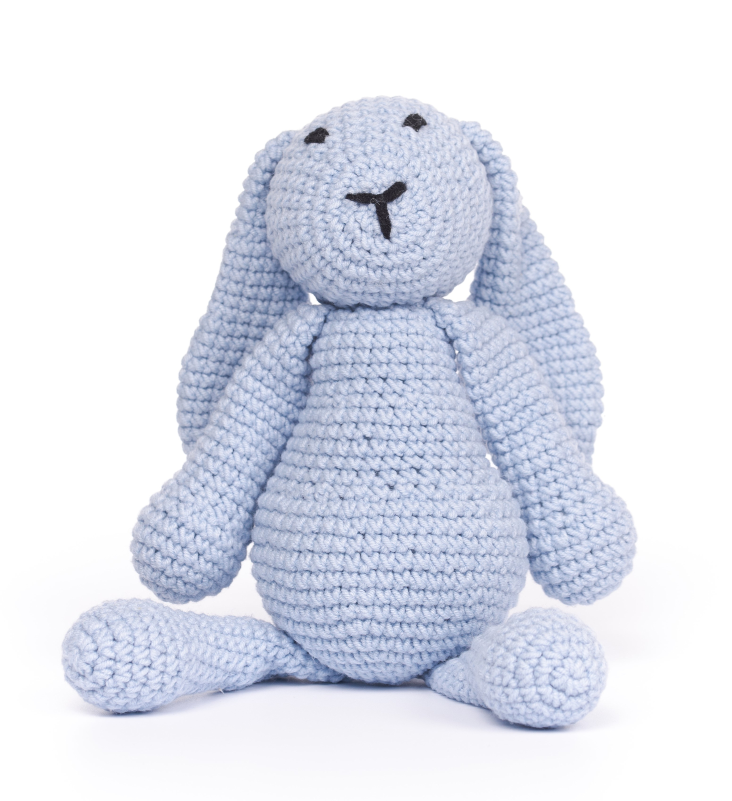 Jucarie crosetata manual - Iepurele Bunny - albastruIepurele Bunny este iubitor, bland si gingas. Ii place sa se joace in iarba si adora cheesecake-ul cu morcovi. Am povestit un pic cu el si ne-a spus ca dorinta lui cea mai mare, este sa faca oamenii fericiti. Fie ca il vrei ca tovaras de joaca, sau pur si simplu iti place sa iti decorezi caminul cu pufosenii care iti bucura musafirii, Bunny este prietenul perfect.Iepurele Bunny este o jucarie crosetata manual si poate fi un cadou perfect, atat pentru cei mici cat si pentru cei mari.Specificatii: