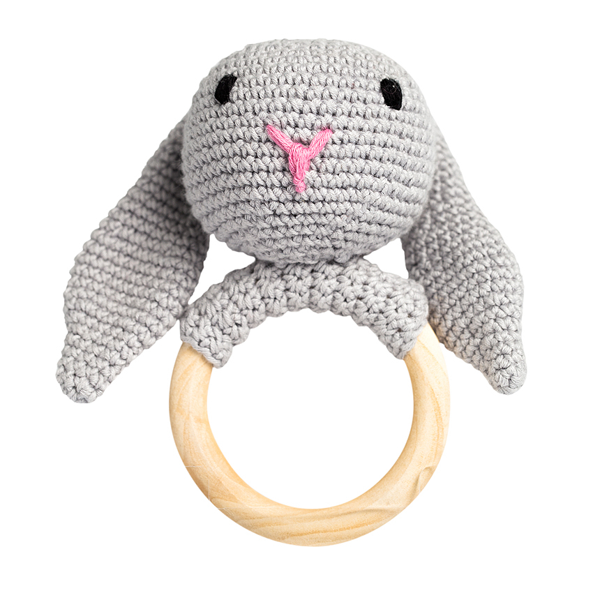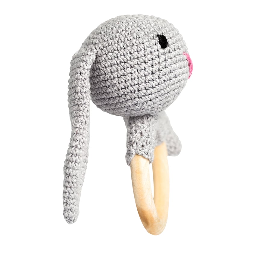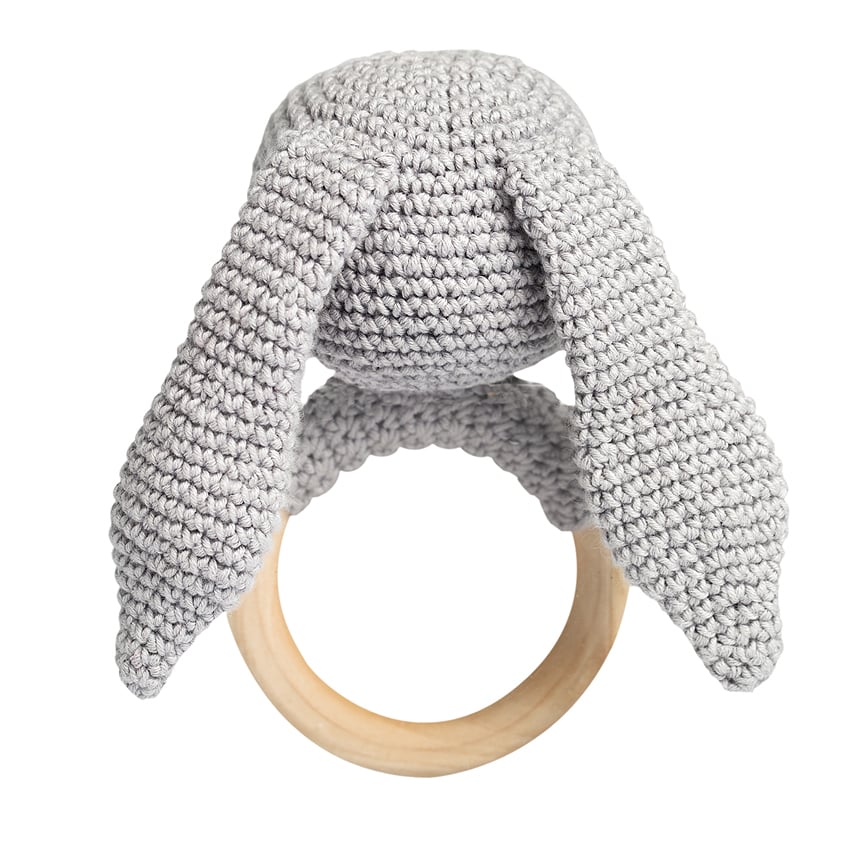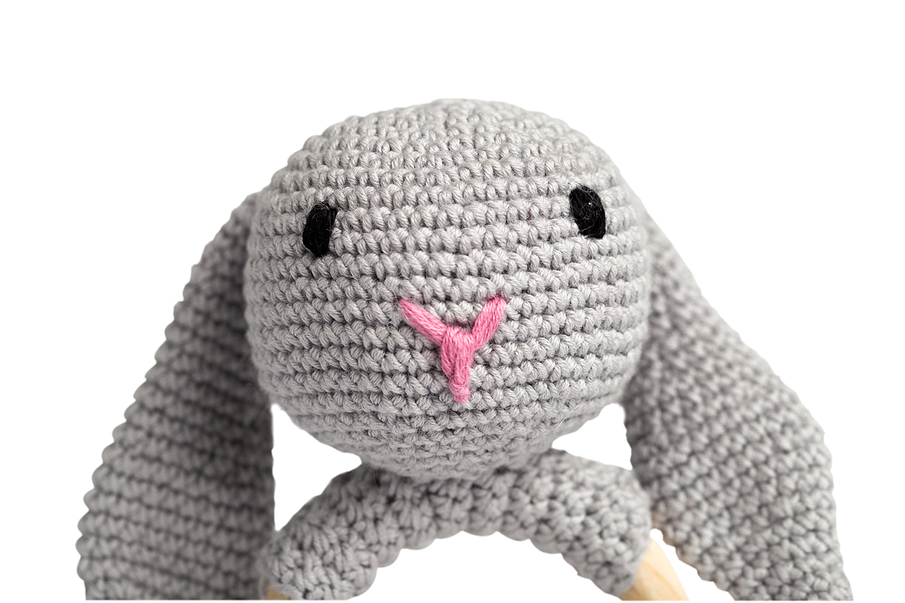Jucarie crosetata manual pentru dentitie - Iepure - griIepurasul este prietenul bebelusilor, inca din primele luni de viata.