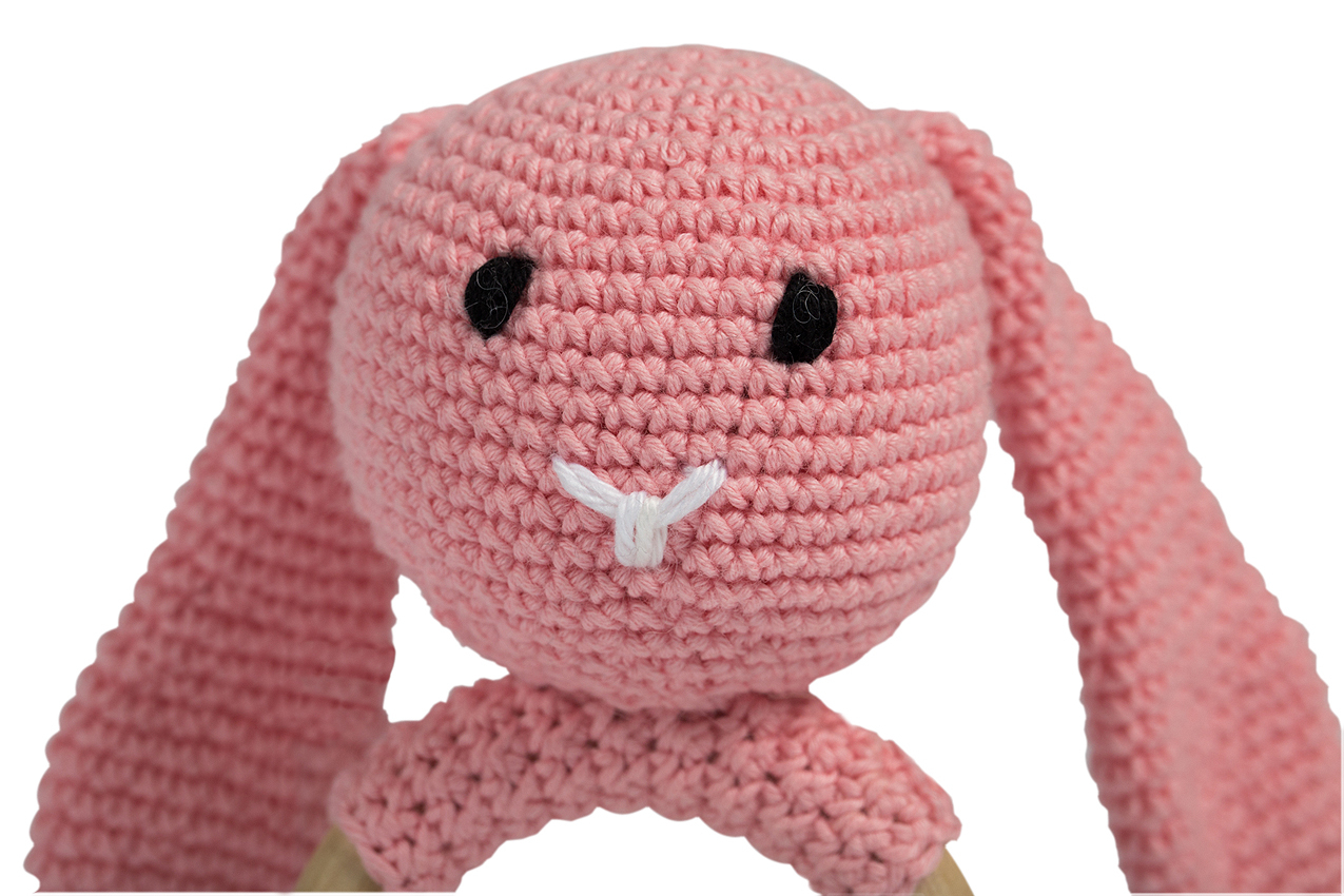 Jucarie crosetata manual pentru dentitie - Iepure - rozIepurasul este prietenul bebelusilor, inca din primele luni de viata.